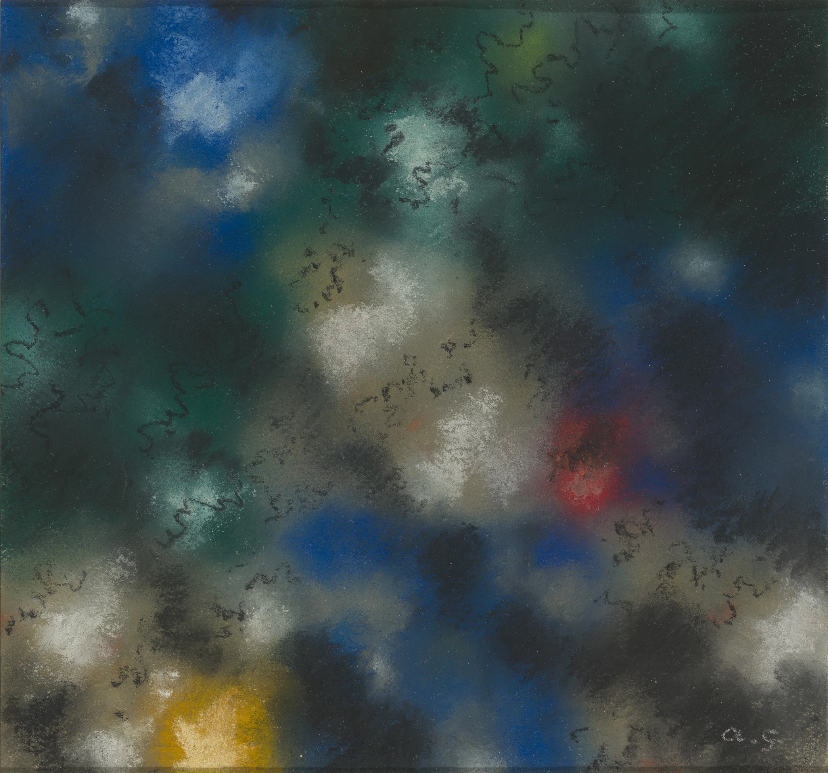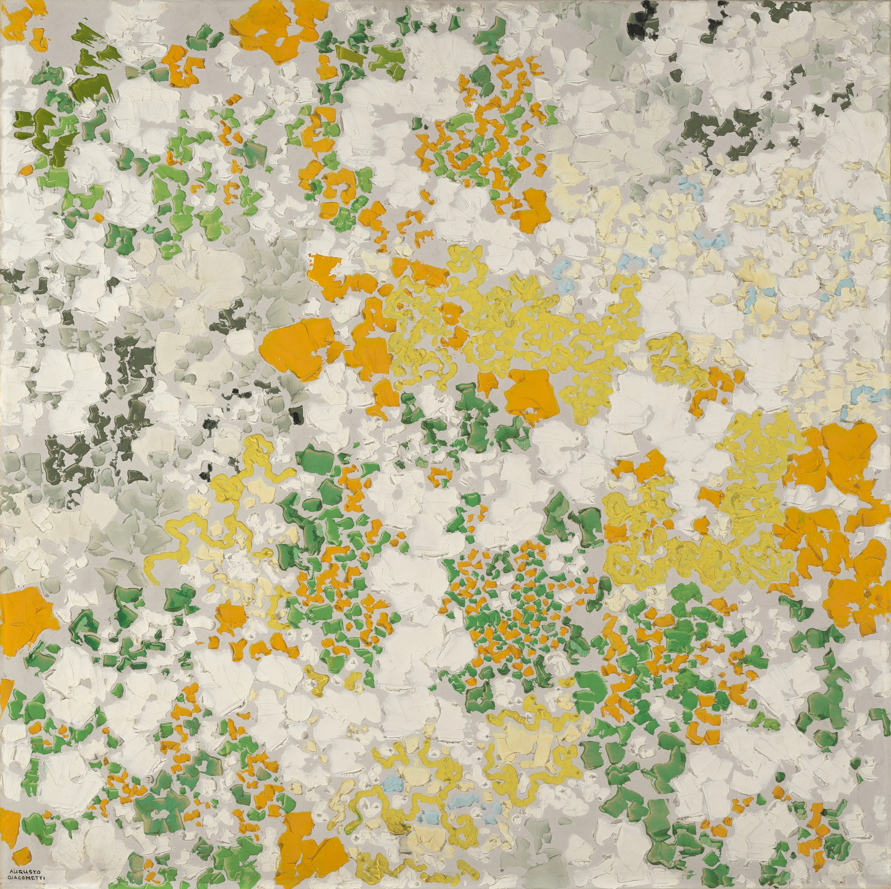 Einen wichtigen Akzent in der Ausstellung setzen die «Chromatischen Phantasien» der Zeit um 1911/12, quadratische Malereien, in denen der Künstler Farbflecken lose auf die Leinwand setzte in einer Art, die an den Pointillismus erinnert. Es sind die wohl bekanntesten Malereien Giacomettis. Der Farbauftrag wirkt spontan, ohne willkürlich zu sein. Er vermittelt eine natürlich atmende Atmosphäre, ohne auf erkennbare Gegenstände zurückzugreifen. Interessant ist, dass Giacometti einer dieser «Chromatischen Phantasien» von 1912 trotzdem einen Titel gab: «Eine Besteigung des Piz Duan». Piz Duan ist ein gut 3100 Meter hoher, die Bergell-Landschaft prägender Berg, und es liesse sich durchaus vorstellen, dass sich der Künstler beim Anstieg durch die Nahsicht auf ein frühlingshaft-lichtvolles Gelände zu seiner Malerei anregen liess. Das einige Jahre später entstandene Werk «Sommernacht», das schon in den 1960er Jahren den Weg ins MOMA in New York gefunden hat, ist ein intensivstes Leuchten am schwarzen Nachthimmel. Zusammen mit dem «Duan»-Bild ist es eine Vorwegnahme manchen Kunstgeschehens der Jahre nach dem Zweiten Weltkrieg – unter völlig anderen, vor allem unpolitischen Voraussetzungen: Weltpolitische Verwerfungen fanden ja kam je einen erkennbaren Niederschlag in Giacomettis Werk.