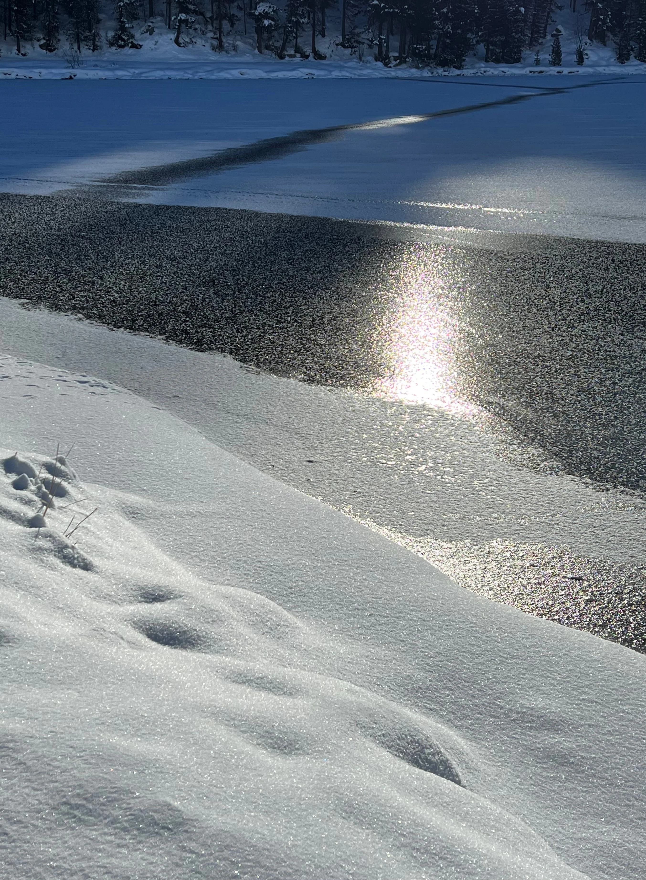 Also habe ich nach unserem Treffen Norbert gebeten, mir einige «Bilder der Stille» aus der Umgebung seines Wohnorts Sils zu schicken, welche im Winter auf jenen Spaziergängen entstanden sind, als die Zwiesprache zwischen Objekt und Betrachter ungestört blieb. Zusammen haben wir eine Auswahl getroffen. Daraus ist eine kleine Geschichte entstanden.