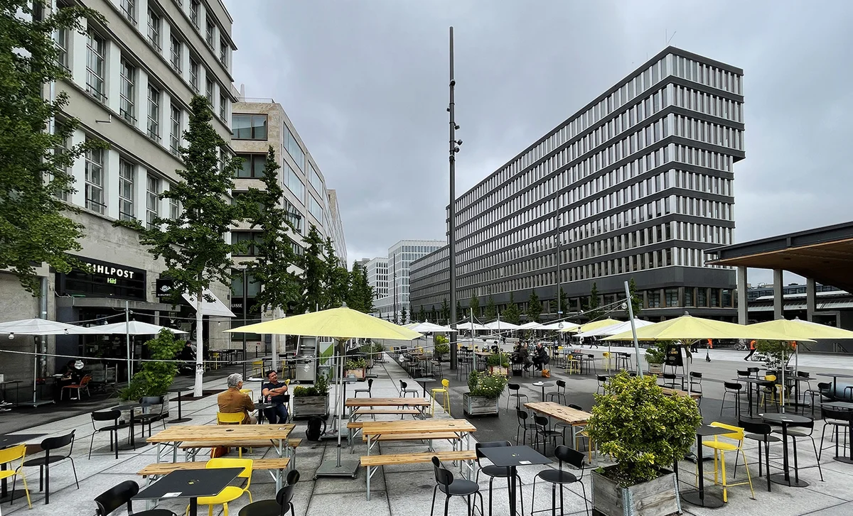 Wie diese verkehrsfreien öffentlichen Räume schliesslich genutzt werden, ist noch abzuwarten. Von der Gesamtanlage her könnte sich hier ein buntes vielfältiges Stadtleben entwickeln. Leider sind die 76 Gingkos das einzige nennenswerte Grün inmitten von Asphalt und Natursteinböden. Es ist zu befürchten, dass man dieses Defizit mit Blumenkästen aus dem Baumarkt zu beheben versucht.