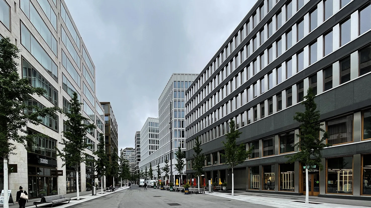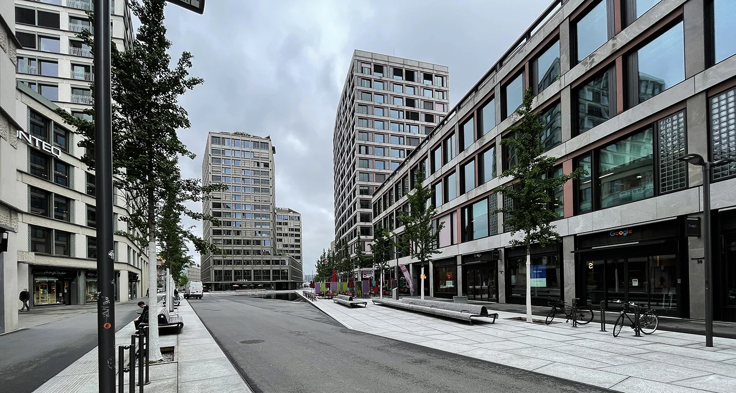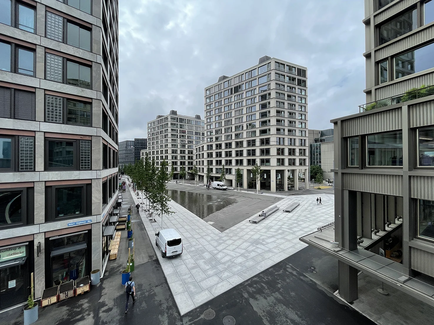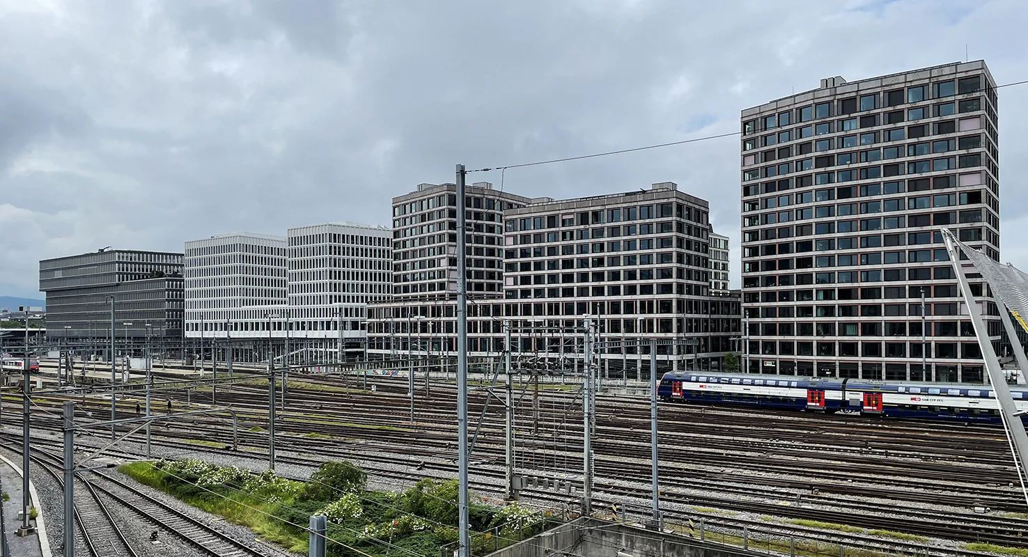 Hinter den Bauten verbergen sich grosse Namen: Caruso St John, David Chipperfield, Max Dudler, Gigon/Guyer, Wiel Arets. Man könnte demnach so etwas wie Autorenarchitektur erwarten. Dem ist aber nicht so. Der Druck der Bauherrschaft, das Areal maximal zu nutzen, hat dazu geführt, dass für Differenzierungen kaum Spielraum bestand. Wer auf dem Negrellisteg in Richtung Europaallee blickt, erfasst eine fast geschlossene Front von mittelhohen Blöcken, die auf eine ähnliche Weise mit Fenstern rasterartig perforiert sind.