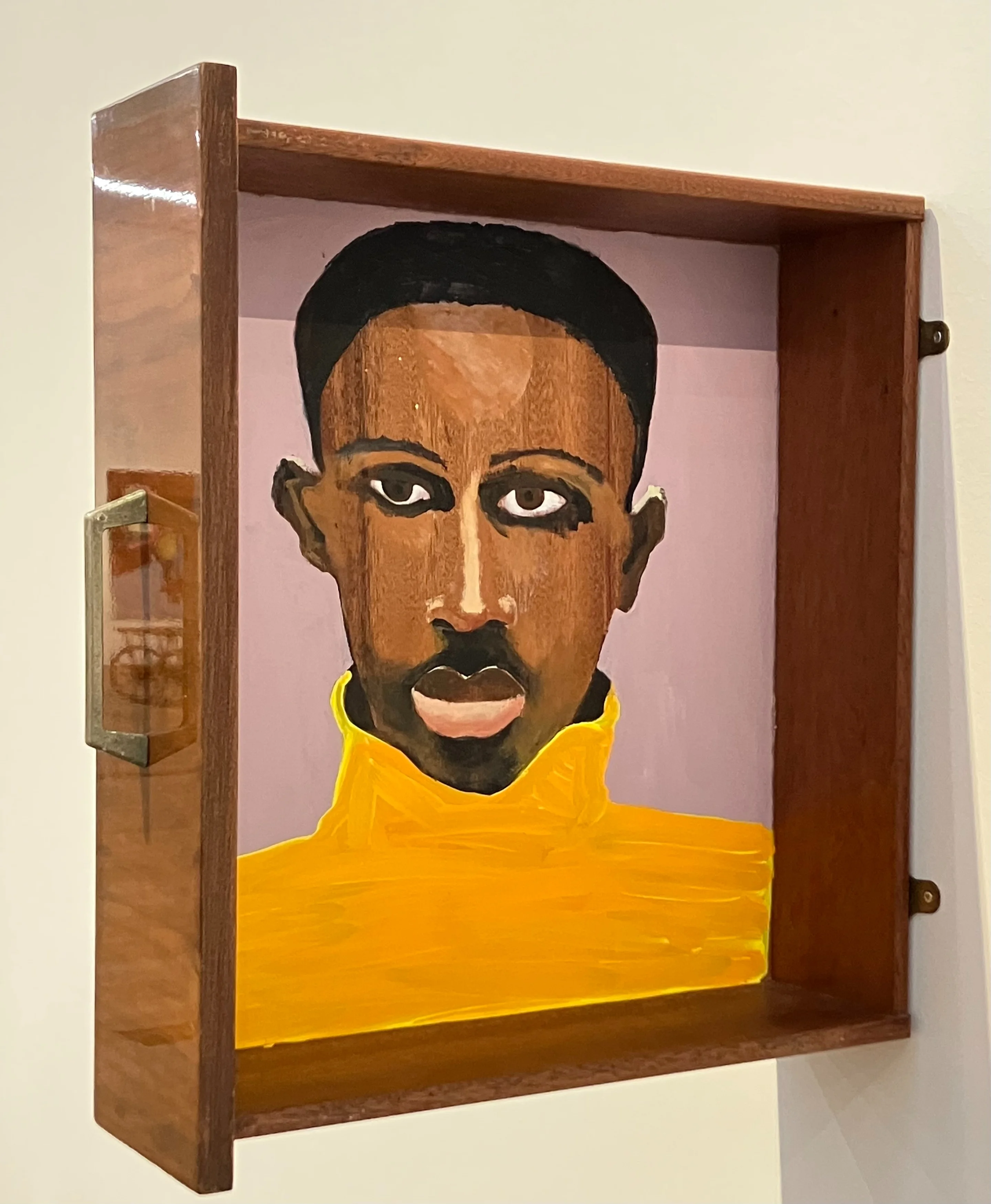 Auf den ersten Blick könnte man glauben, man sehe Harmloses oder gar Idyllisches vor sich: Adrett gekleidete schwarze Menschen treffen sich in modern und nüchtern ausgestatteten Innenräumen oder draussen mit Blick auf das Meer. Die Szenen erinnern an theatralisches Bühnengeschehen. Die Menschen unterhalten sich, berühren sich und gehen verschiedenen Tätigkeiten nach, die wir nur schwer einzuordnen vermögen. Es könnte um Geschäfte, aber auch um Freizeit und Entspannung gehen. Die flächig gehaltenen Malereien sind bunt. Die Farben leuchten. Die Erzählweise wirkt schlicht, plakativ und beinahe naiv. Eine Szene, «The Cabin» betitelt, zeigt einen Kellner und einen Passagier. Eine andere spielt, mit Ausblick auf die stürmische See, auf Deck. Gewiss: Es handelt sich um eine Kreuzfahrt mit lauter Schwarzen als Teilnehmer. Der Titel dieser Bilderserie lautet «Le Rôdeur».