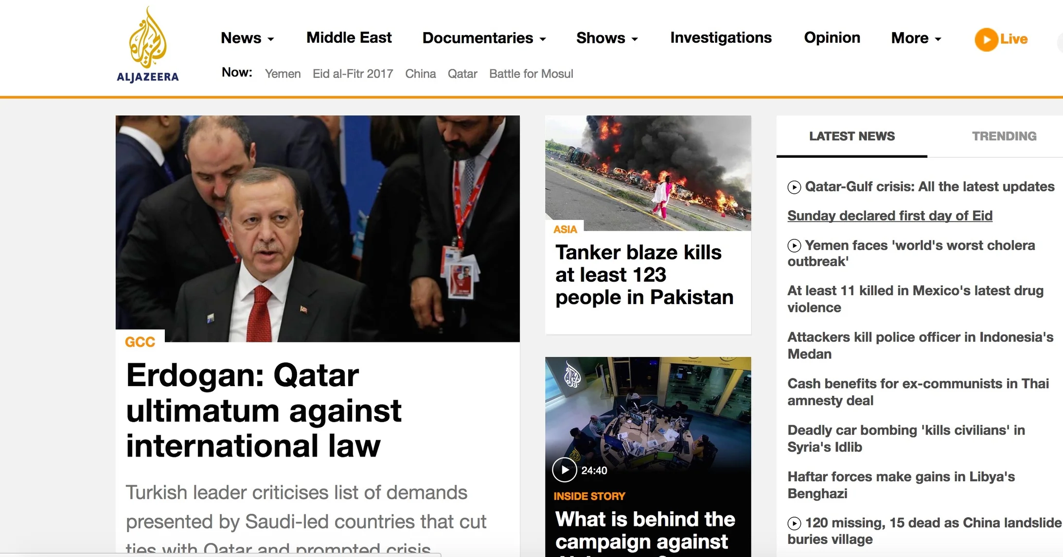Die wahrscheinlich einschneidendste der 13 Forderungen ist die Aufforderung, die Fernseh- und Radiokette von al-Jazeera zu schliessen. Al-Jazeera („Die Insel“, was arabisch auch „Halbinsel“ bedeutet) wurde 1996 von Qatar lanciert und ist auf der Halbinsel beheimatet. Das weltweit verbreitete Mediennetz betreibt mehrere arabische Fernsehsender in arabischer, englischer und anderen Sprachen. Al-Jazeera, auch im Web präsent, ist im ganzen arabischen Raum leicht zu empfangen.