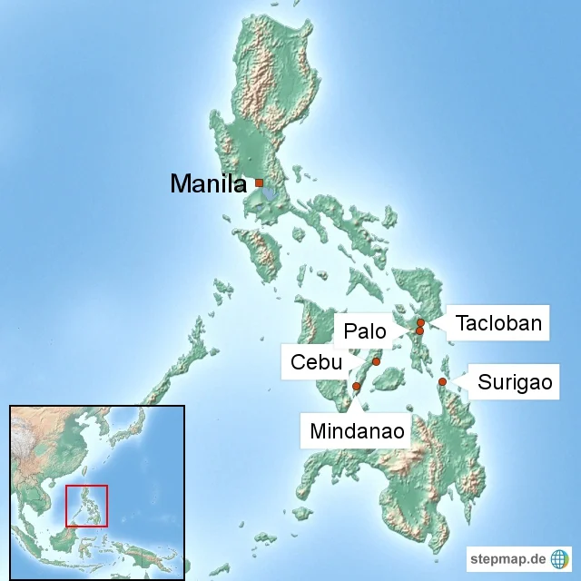 Der Wirbelsturm erreichte Spitzengeschwindigkeiten von bis zu 325 Kilometern pro Stunde. Das Ausmass der Katastrophe ist noch nicht abschätzbar, da die Telefonverbindungen in die betroffenen Regionen unterbrochen sind. Laut Angaben vom Samstagabend hat der Sturm über 1'000 Todesopfer gefordert. Allein in Tacloban, der Hauptstadt der zentralphilippinischen Provinz Leyte, wurden laut Agenturberichten über 100 Leichen gezählt. Die philippinische Armee hat mit Hilfsflügen in die betroffenen Gebiete begonnen. Die meisten Opfer lebten in Wellblechhütten, die schon kleineren Stürmen nicht standhalten. Betroffen sind neben Tacloban vor allem auch Palo, Suriago und Cebu.