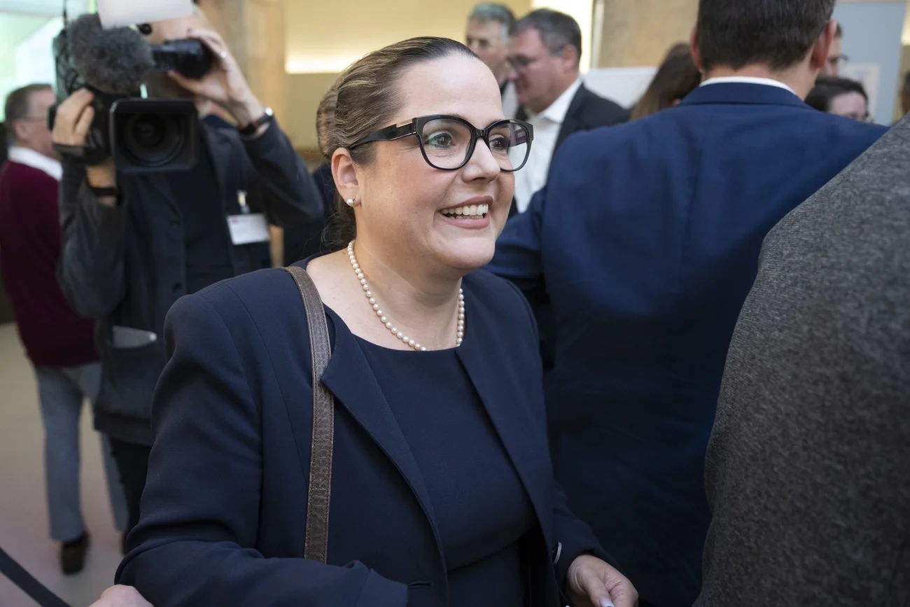 Sie repräsentiert beides: den SVP- und den Frauentrend. Martina Bircher nach ihrer Wahl in den Aargauer Regierungsrat am 20. Oktober 2024 in Aarau (Keystone, Christian Beutler)