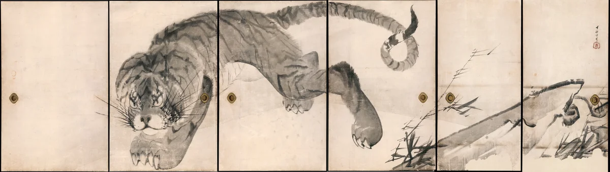 Den Tiger und den Drachen aus dem Muryōji-Tempel in Kushimoto soll Rosetsu, so will es zumindest die Legende, in einer einzigen Nacht auf die Schiebtüren gemalt haben. Man glaubt es, wenn man sich die kräftigen Linien anschaut, die sich von dem geringelten Schwanz bis zu den Ohren des Tigers und vom gezackten Rücken bis zu den geifernden Lefzen des Drachen ziehen. Damit die Türen mit den beiden Hütern Buddhas und all die weiteren Paneele mit ihren Hühnern, Katzen und Kranichen, den spielenden chinesischen Kindern und den daoistischen Unsterblichen gebührend zur Geltung kommen, haben die Kuratoren der Ausstellung, Khanh Trinh, Matthew McKelway sowie Takeo und Itsuko Atsumi, den Zen-Tempel in Kushimoto im Rietberg-Museum rekonstruiert und so auch westlichen Besuchern ein original japanisches Raumerlebnis ermöglicht.