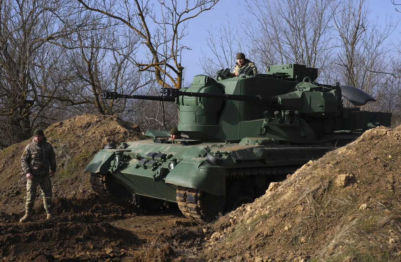 Ukrainische Soldaten mit einem Flugabwehr-Panzer Gepard aus Deutschland in der Nähe von Odessa. Ohne westliche Waffenlieferungen wäre die ukrainische Armee kaum in der Lage, sich seit zwei Jahren gegen die russischen Angreifer zur Wehr zu setzen. (Foto: EPA/IGOR TKACHENKO)