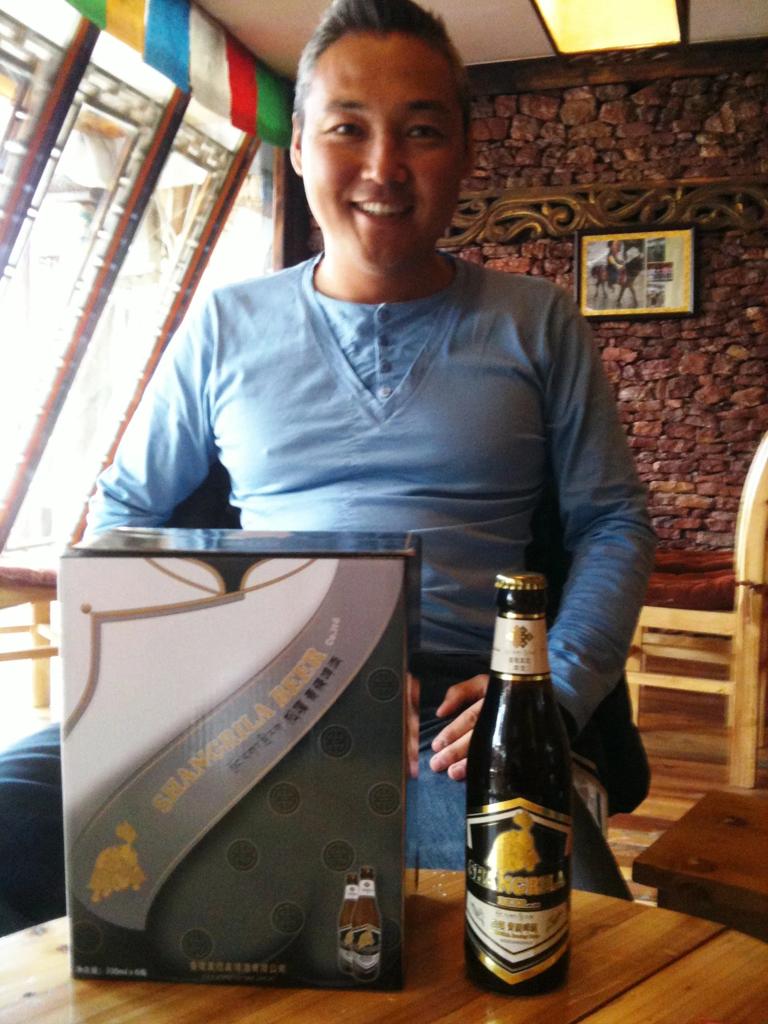 Weil es kein lokales Bier gab, kam er auf die Idee, ein eigenes zu brauen. Mit Hochlandgerste entstand daraus nach einigen Versuchen ein feines Bier mit dem Namen „Shangri-la“ natürlich. Songtsen hat in der Schweiz Braukurse absolviert. Doch irgendwie war er von seinem Hochland-Bier nicht überzeugt. Auch der dann angestellte chinesische Braumeister bekam es nicht in den Griff. Durch „Swiss Experts“ fand er den pensionierten und passionierten Brauer Fredy Stauffer. Nach einigem Tüfteln im Labor fand Stauffer den richtigen Trick, in dieser Höhenlage mit den andern Druckverhältnissen und den Temperatur-Siedpunkten richtig umzugehen. Kam dazu, dass die Hochlandgerste anders reagiert als die Braugerste. Das in der Mikro-Brauerei hergestellt bernsteinfarbige Bier verkauft sich jetzt wie verrückt.