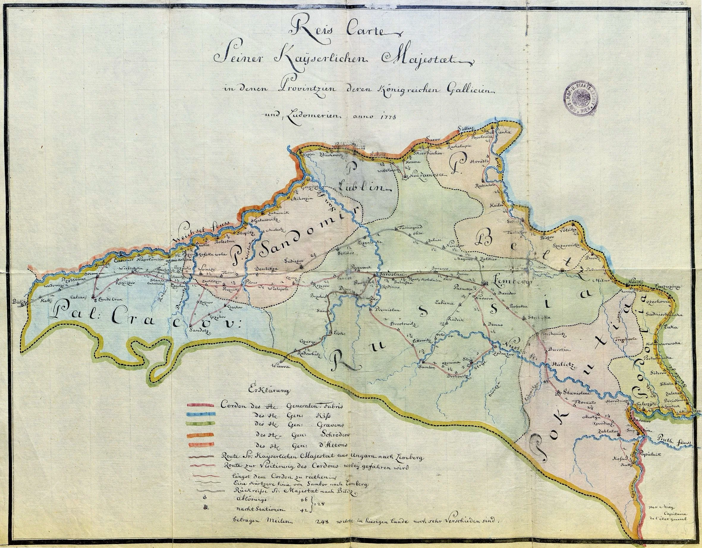 1772 fiel aus der Zerreissung Polens ein Gebiet von der doppelten Fläche der Schweiz an Österreich-Ungarn, erhielt mit diplomatischer Fantasie den Namen Galizien, auch Königreich Galizien und Lodomerien, und lieferte der k. u. k. Monarchie billige Rohstoffe, Steuereinnahmen und Rekruten.