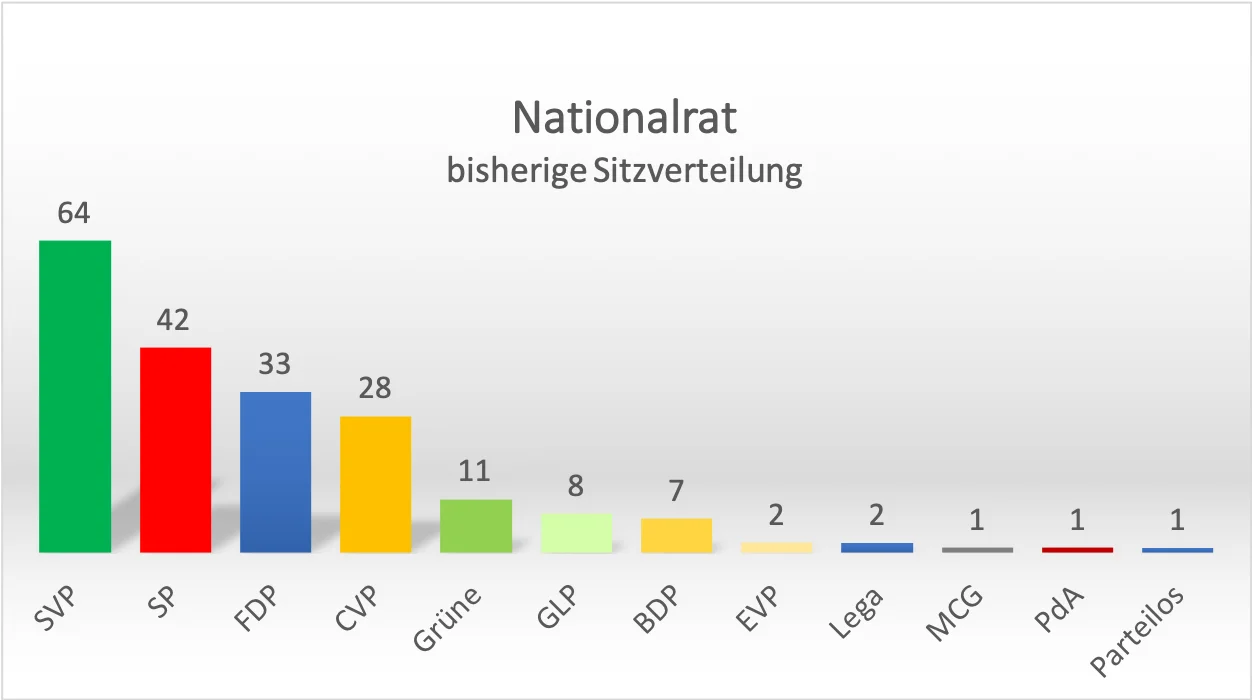 Die SVP, mit Abstand die stärkste Partei in der Schweiz, kam vor vier Jahren auf 29,4 Prozent der Stimmen. SVP-Präsident Albert Rösti weiss, dass es schwierig sein wird, dieses Rekordergebnis erneut zu erreichen. Das jüngste SRG-Wahlbarometer sagt der Partei Verluste von 2,1 Prozent voraus.