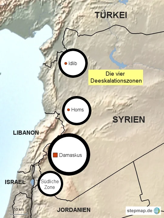 Sie sollen in den vier Regionen geschaffen werden, in denen es Kämpfe zwischen der syrischen Regierungsarmee und den Rebellengruppen gibt - jedoch nicht in jenen Teilen Syriens, in denen der „Islamische Staat“ (IS) die Macht ausübt. Auch von den Gebieten, die von syrischen Kurden beherrscht werden, ist nicht die Rede.