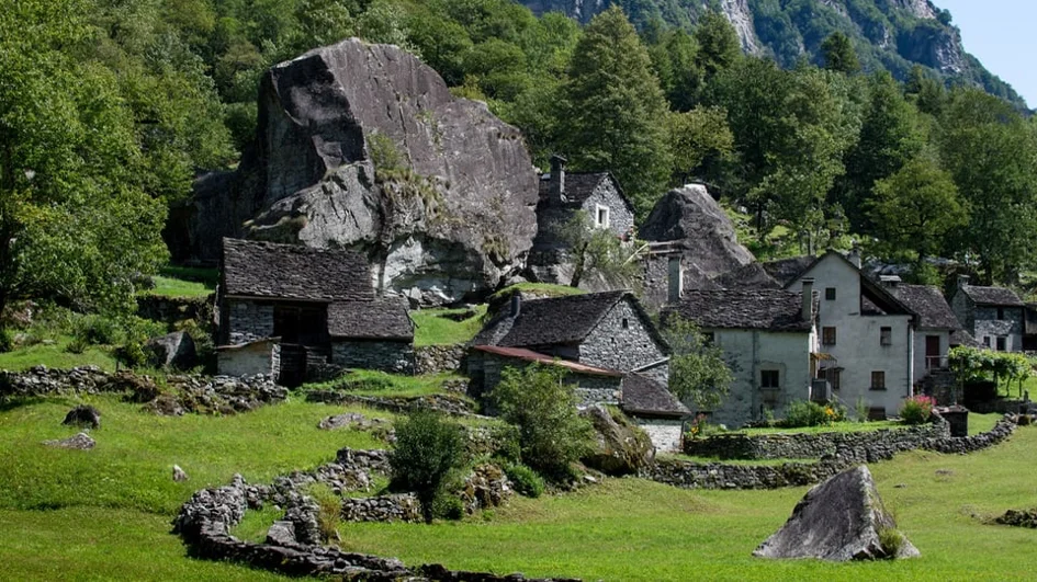 Viele Steine gibt’s noch heute im wild-herben Val Bavona, diesem steilen Seitental des oberen Valle Maggia. Da ist nicht viel anderes als eine schmale Talsohle, übersät von monströsen Felsblöcken, oft so gross wie mehrstöckige Wohnhäuser: Zeugen von Bergstürzen und Erdrutschen. Daneben ragen nackte Felswände senkrecht in die Höhe. Wer in dieses gebirgige Gelände gerät, ahnt etwas von der unerbittlichen Härte des Berglerlebens, vom zähen Kampf der Bauern und Hirten gegen die übermächtigen Naturgewalten. Von den 127 Quadratkilometern Fläche dieses kleinen Tessiner Tals können nur rund 1,5 Prozent des Bodens landwirtschaftlich genutzt werden. Darum führen kühne und gefährliche Wege über tausend Höhenmeter hinauf zu abgelegenen Maiensässen und winzigen Matten. Ein Nomadentum mit Behausung auf Zeit.
