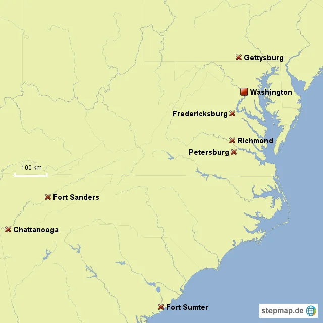 Vom 23. bis 25. November 1863 findet die Schlacht von Chattanooga (Tennessee) statt. Die nördlichen Unionstruppen erringen einen entscheidenden Sieg und kontrollieren jetzt ganz Tennessee.