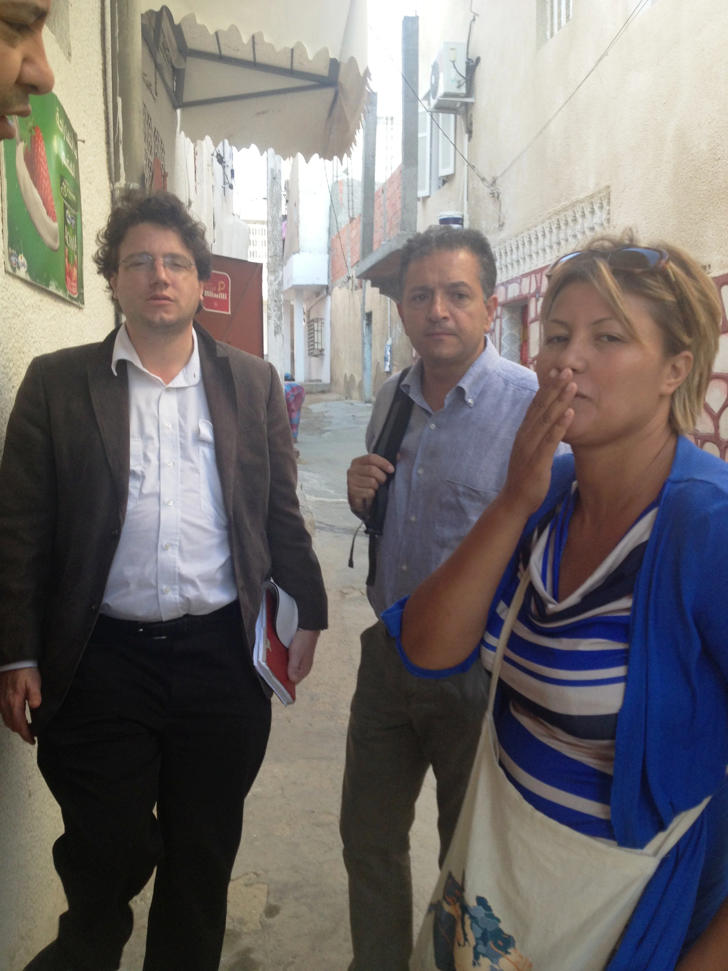 Wir sind in einer Seitengasse in der Nähe einer Metrostation in der Cité Mouraj, einem Aussenquartier von Tunis. „Hier lebte mal der Mittelstand, aber nachdem die Kaufkraftverluste in den letzten beiden Jahren so gross waren, ist das jetzt der verarmte Mittelstand“, sagt die Projektassistentin Rym Ghadghani, die für die Internationale Organisation für Migration IOM Amine Jabri in die Selbständigkeit begleitet. Fleisch und andere Nahrungsmittel sind in Tunesien seit 2011 bis zu dreimal teurer geworden.