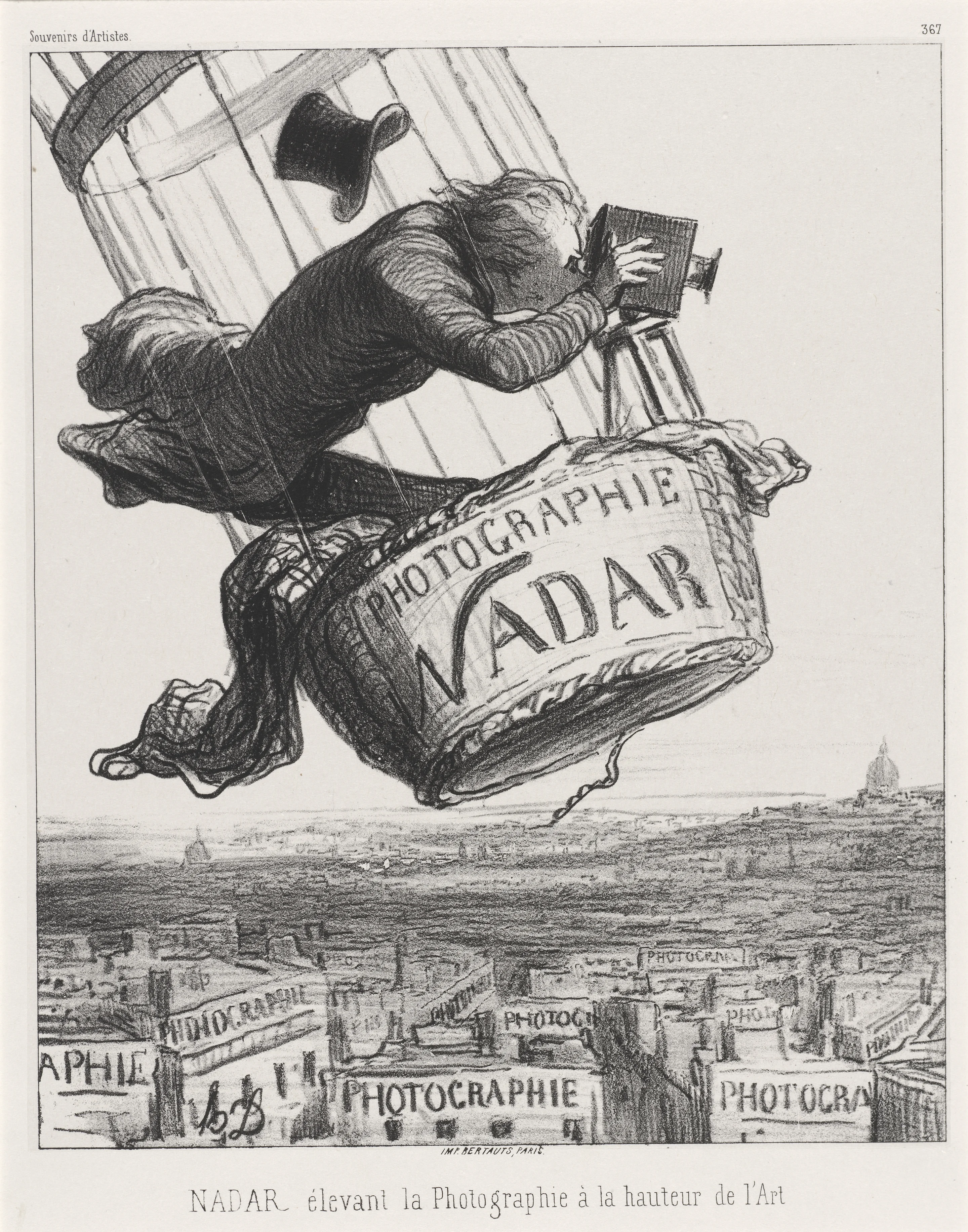 Die ersten Bilder, die er von einem Fesselballon aus machte, waren noch ziemlich unscharf, aber ein Foto von 1886, das den Palast und die Gärten von Versailles zeigt, ist von beachtlicher Qualität. Einige Zeit vorher, im Jahr 1860, hat sich der berühmte Karikaturist Honoré-Victorin Daumier mit einer Zeichnung über Nadars Ballonfahrten lustig gemacht.