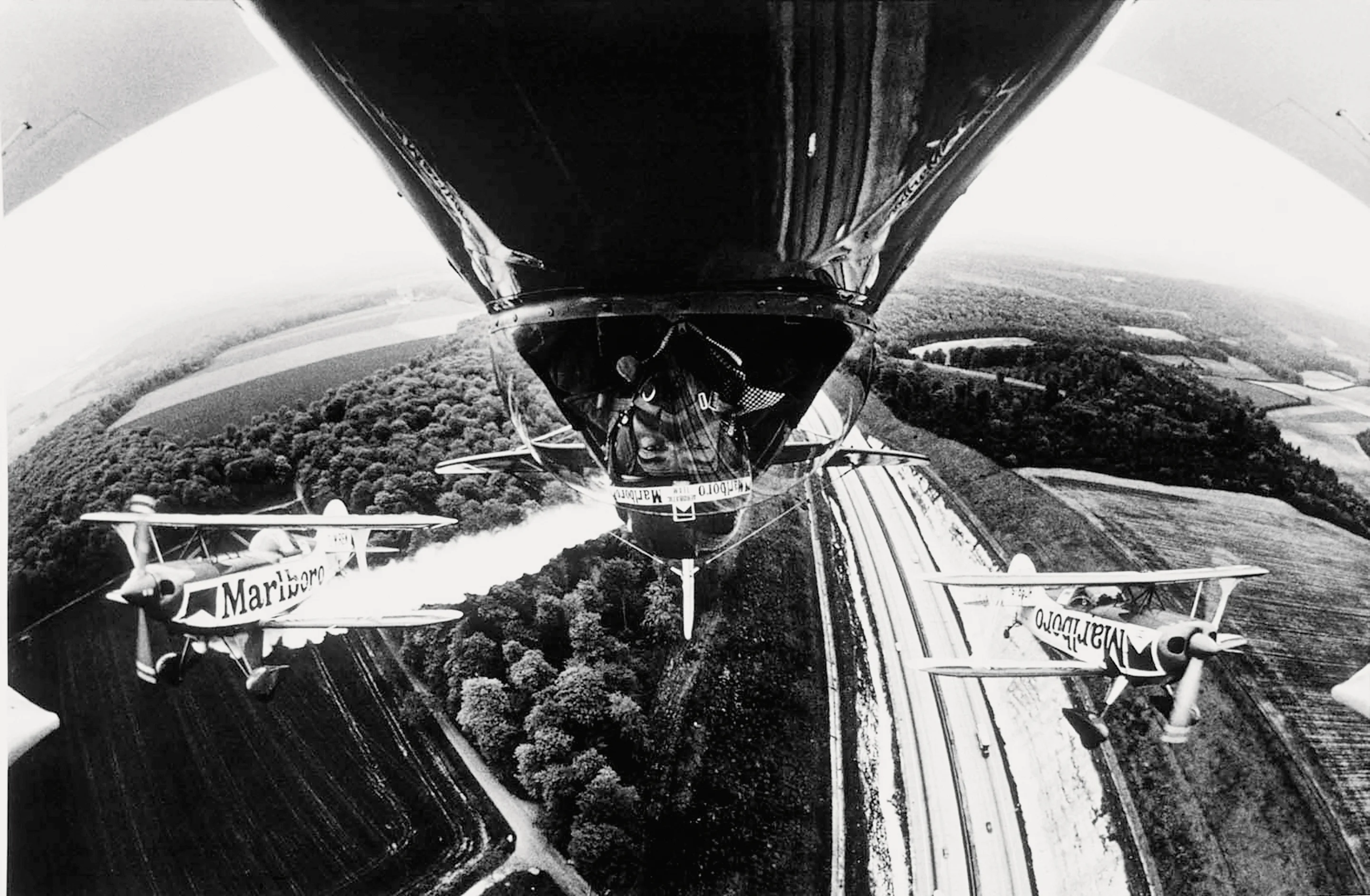 In aller Regel erforderten die Bilder aus der Luft von den Fotografen erheblichen Mut. Eamonn McCabe, der zusammen mit Gemma Padley diesen reich bebilderten Band zusammengestellt hat, berichtet in einer Art Vorwort, wie er bei den Kunstflugweltmeisterschaften 1982 kopfüber fotografiert hat und dabei die Kamera nur mit grösster Mühe halten und auslösen konnte. Kurz nachdem er das letzte Mal auf den Auslöser gedrückt hat, ist der Pilot in einen Sturzflug übergegangen, und damit es nicht zu langweilig wurde, hat er zwischenzeitlich den Motor abgestellt. Er sei sehr erleichtert gewesen, als der Motor wieder ansprang, schreibt McCabe, der selber Pilot war.