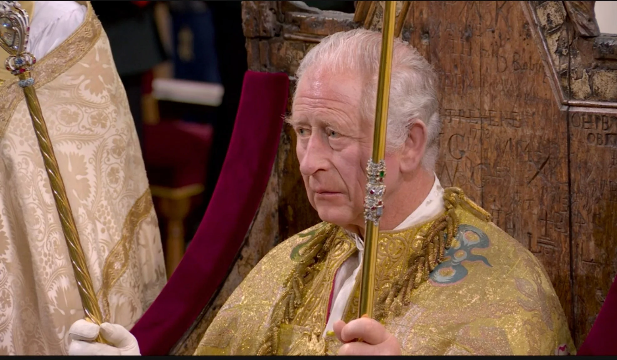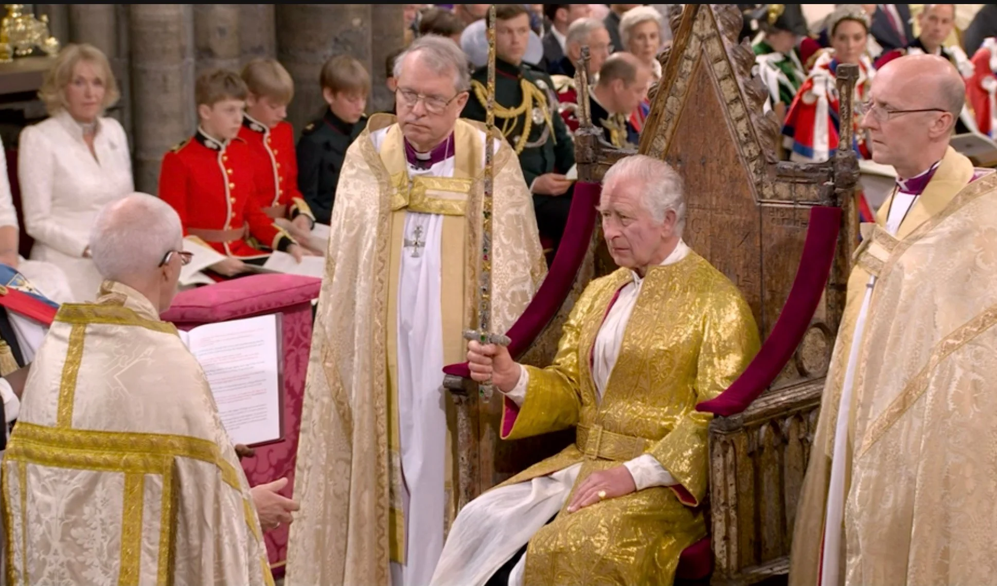 Um 13.02 fand die eigentliche Krönung statt. Der Erzbischof von Canterbury setzt König Charles III. die über 400 Jahre alte Edwardskrone auf. 40 Königinnen und Könige wurden hier vor Charles gekrönt.