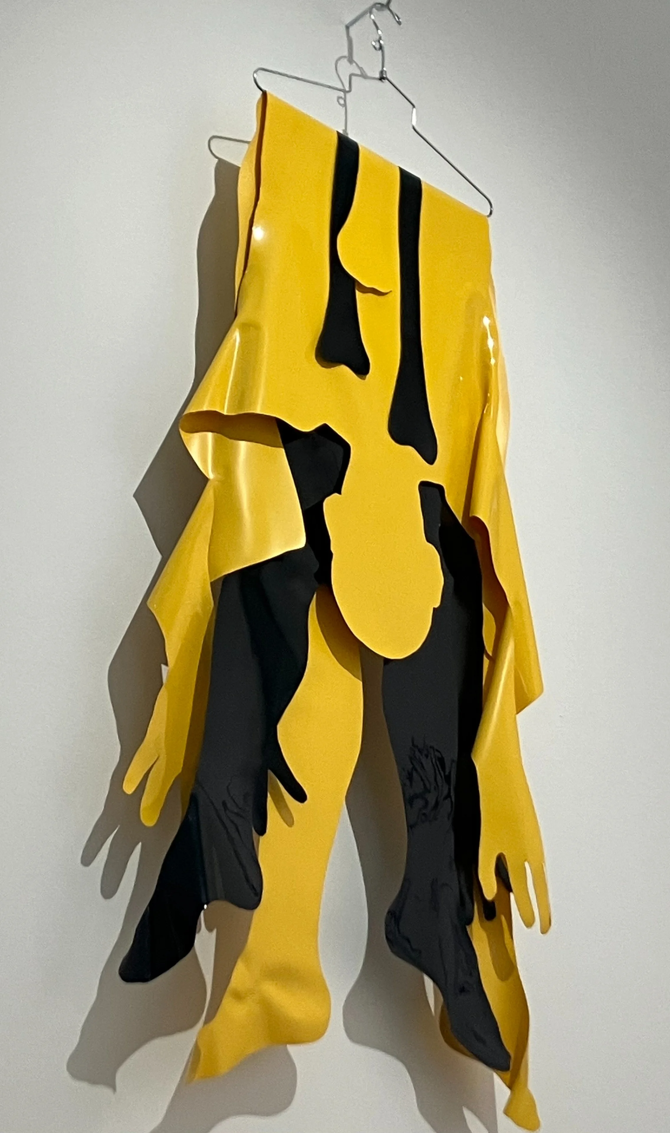 Zu den Formen gelangte sie, indem sie die Körperkonturen von Menschen aus ihrem Umkreis auf Packpapier nachzeichnete, ausschnitt und auf die Vinyl-Folie übertrug. Ambivalent sind diese Arbeiten, weil sie in ihrer farbigen Präsenz an den von Konsum- und Medienwelt inspirierten Pop anschliessen, andererseits aber – und der Eindruck dominiert in dieser Werkgruppe – an den seinerseits widersprüchlichen, zwischen Schönheit und Gewalt pendelnden Mythos des von Apoll zur Strafe gehäuteten Marsyas gemahnen.