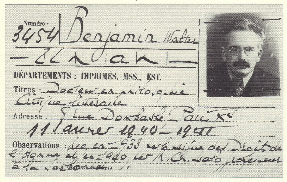 Walter Benjamins Leserausweis für die Bibliothèque nationale de France, Paris 1940 (Wikimedia)