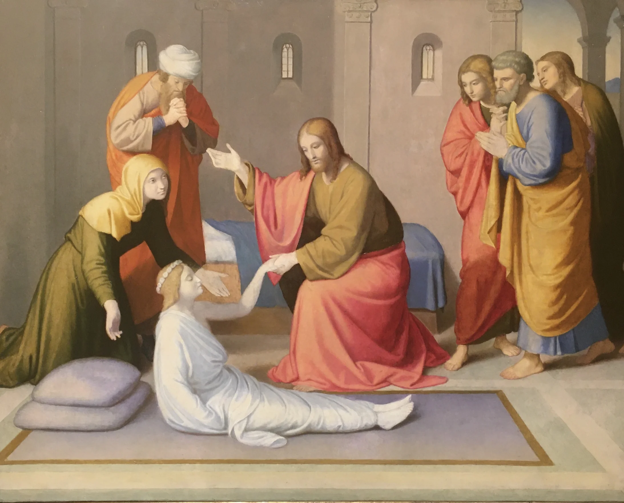 Ob es eine Kuriosität ist oder nicht: Eine Überraschung ist für viele Besucherinnen und Besucher sicher die Begegnung mit Emilie Linder (1797, Basel, bis 1867, München), die in Nazarener-Manier die Bibel-Szene der Auferweckung des Töchterchens des Jaïrus schildert.