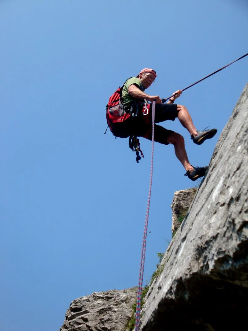 Er hatte – allein und in den Socken - etwa zwei Drittel der Tour geschafft. Ohne Seil, ohne Haken, ohne jegliche technischen Hilfsmittel: „Der Abstieg ohne Sicherungsseil und mit zerfetzten Strümpfen an den Füssen war kein Spass, aber in jenen Jahren packten wir die Felsen sehr leicht.“