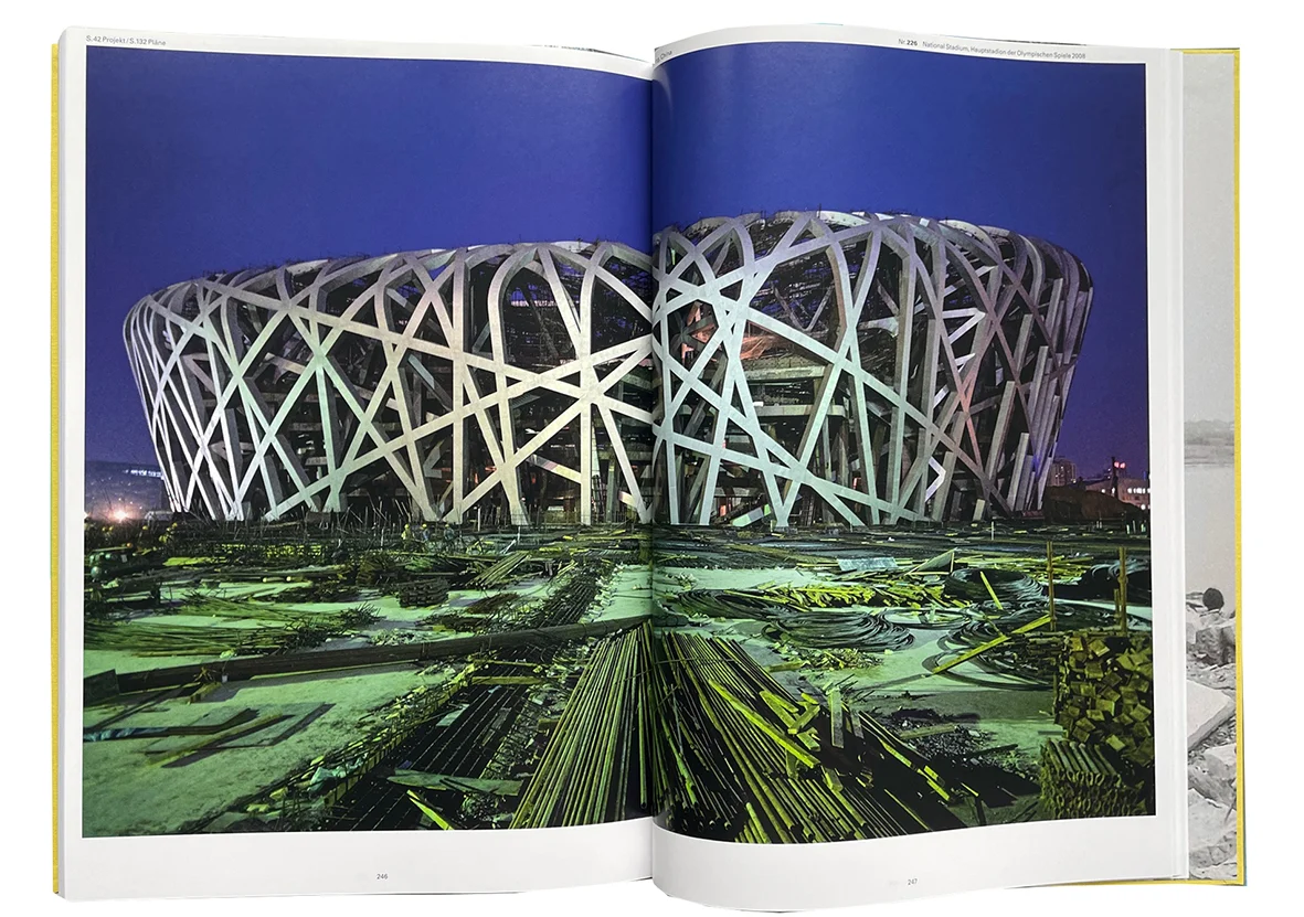 Es hat lange gedauert, bis die Lücke geschlossen werden konnte. Band 6 des Gesamtwerkes von Herzog&deMeuron, der die Zeit von 2005 bis 2007 abdeckt, wurde schon 2018 herausgegeben. Es fehlte die Übersicht über die Zeit von 2002 bis 2004, während der die – nebst der Tate Modern in London – zwei wichtigsten Werke aus dem Basler Büro projektiert wurden: die Elbphilharmonie in Hamburg und das Olympiastadium in Peking. Ob der knallgelbe Leineneinband diesem Umstand Rechnung tragen möchte?