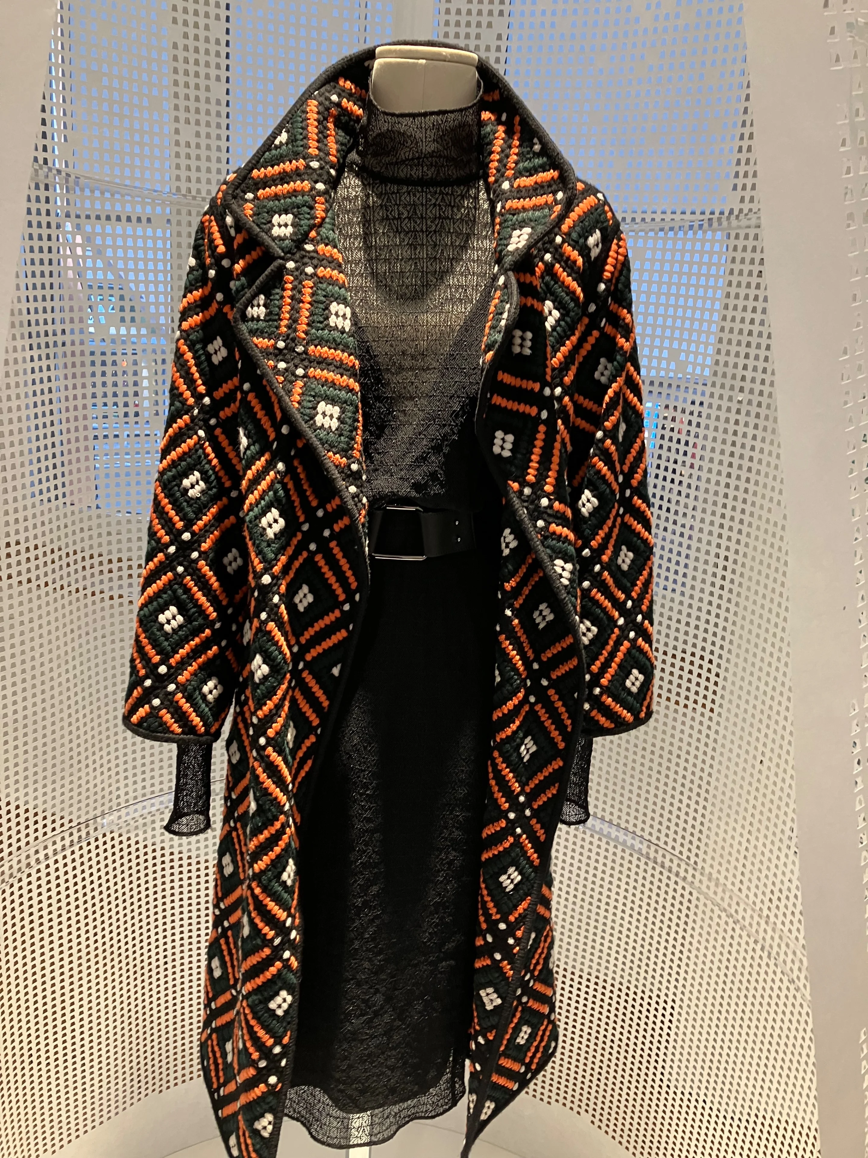So beginnt im Hochparterre und im Aufgang zur ersten Etage jene Ausstellung, die Albert Kriemler zum Hundertjahr-Jubiläum von Akris im Textilmuseum St. Gallen entworfen hat: mit der Heimat, mit dem Verwurzeltsein in einer Welt, in der das Textile seit Jahrhunderten eine ganz wichtige, wenn auch immer wieder von Krisen heimgesuchte Rolle gespielt hat und noch immer spielt.