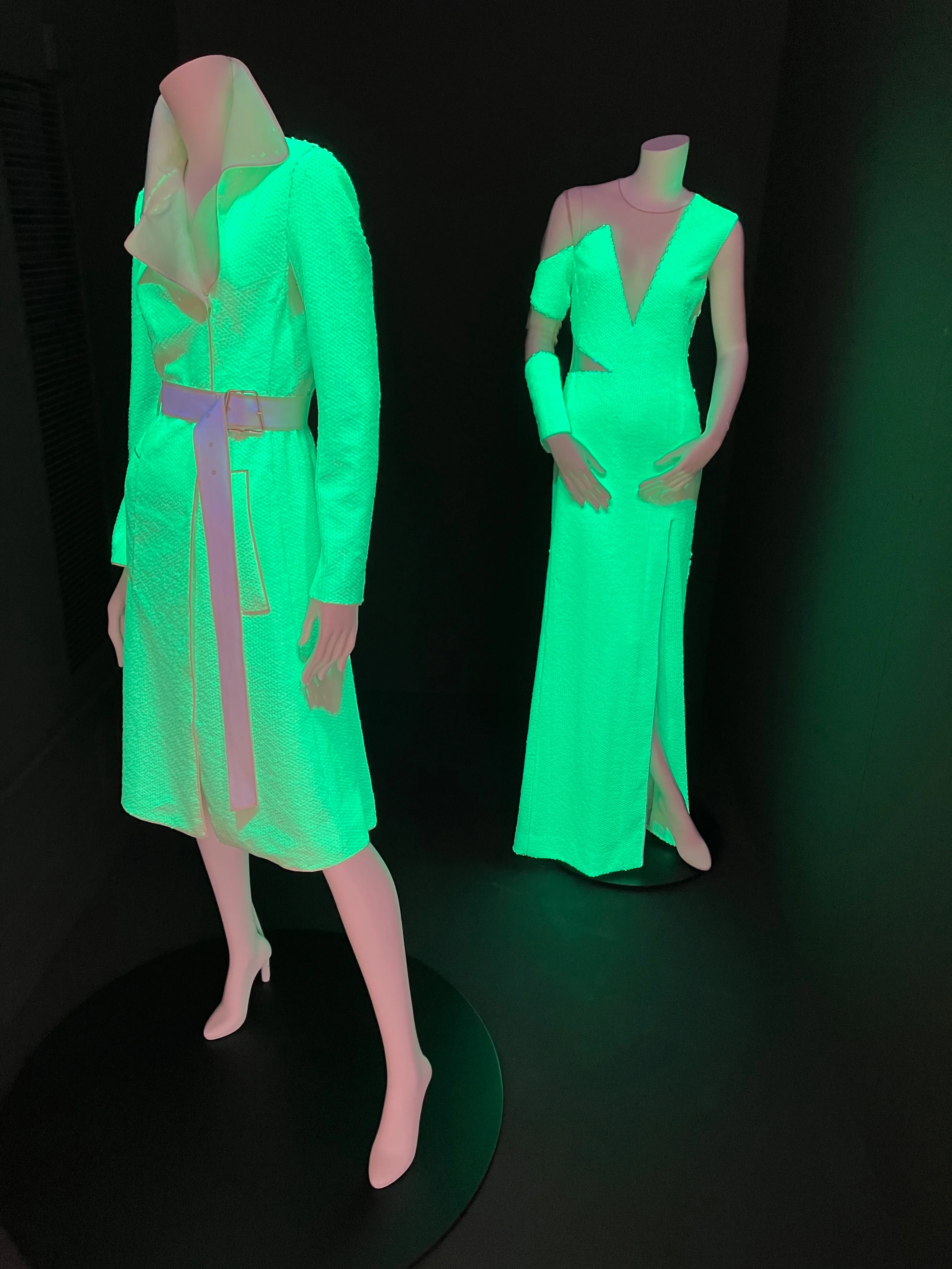 Nichts ist unmöglich, wenn es nur schön ist. Diesen Eindruck vermittelt die obere Etage der Ausstellung, die unter anderem von einem Besuch beim Künstler Imi Knoebel im Mai 2020 erzählt, der für seine phosphoreszierenden Werke bekannt ist. Sie haben Albert Kriemler zu seiner Entwicklung von im Dunkeln leuchtenden Stoffen inspiriert, die zum Highlight der Frühjahr-Sommer-Kollektion für 2021 werden. Ein Lichtblick im ersten Jahr der Pandemie.