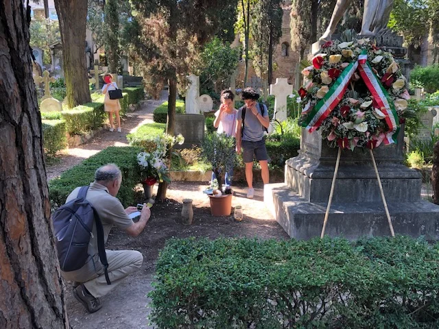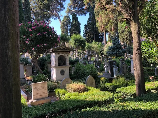 Goethes Sohn August ruht hier, ebenso die britischen Schriftsteller John Keats und Percy Shelley (dessen Frau als „Mutter“ der Frankenstein-Figur gilt). Auch der marxistische Philosoph Antonio Gramsci, der von Mussolini in den Tod getrieben wurde, ist hier begraben.