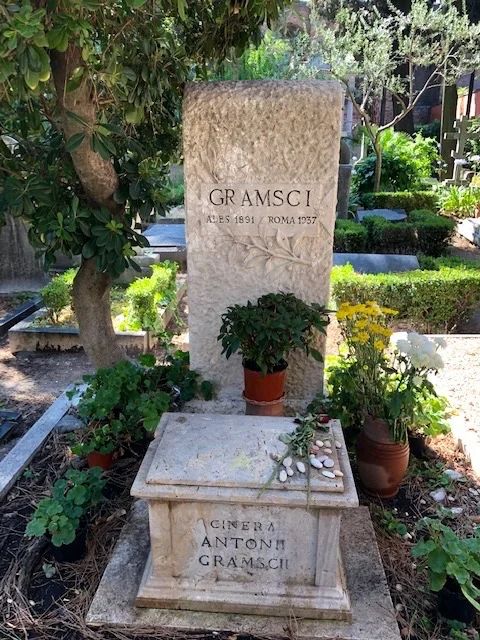 Der jetzt Verstorbene hatte viel mit Gramsci gemein: vor allem seine Auflehnung gegen Tyrannen und überhebliche Herrscher. Camilleri wäre wohl stolz, dass er nur wenige Meter von Gramsci entfernt liegt – und umgekehrt.