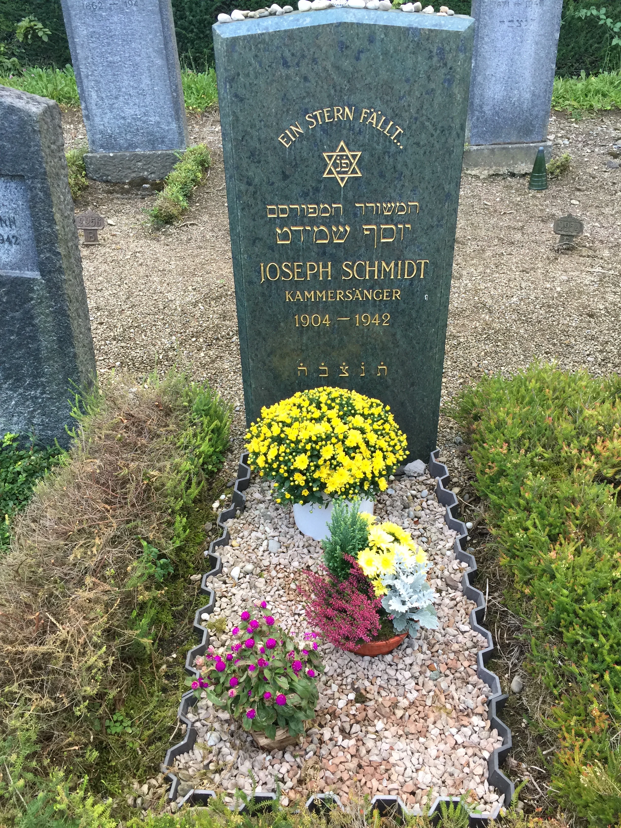 Einen Tag später, so schrieb eine Bekannte Schmidts, kam die Aufenthaltsbewilligung, die ihn aus dem Lager befreit hätte. Und einen weiteren Tag später wurde er im jüdischen Friedhof Unterer Friesenberg in Zürich begraben. An der Beerdigung nahmen neun Männer teil: Lichtegg und Rothmüller als Vertreter des Opernhauses, und einige Kollegen aus dem Schauspielhaus. Auf seinem Grabstein stand eine Andeutung seines bekannten Liedes «Ein Stern fällt vom Himmel».