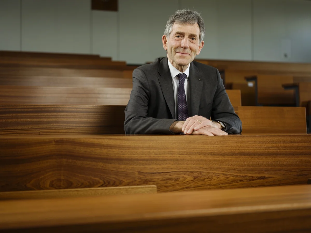 Bernhard Ehrenzeller, Rektor der Universitaet St. Gallen (HSG), posiert fuer ein Portrait am 19. April 2021 in einem Vorlesungsaal der HSG in St. Gallen. (KEYSTONE/Christian Beutler)