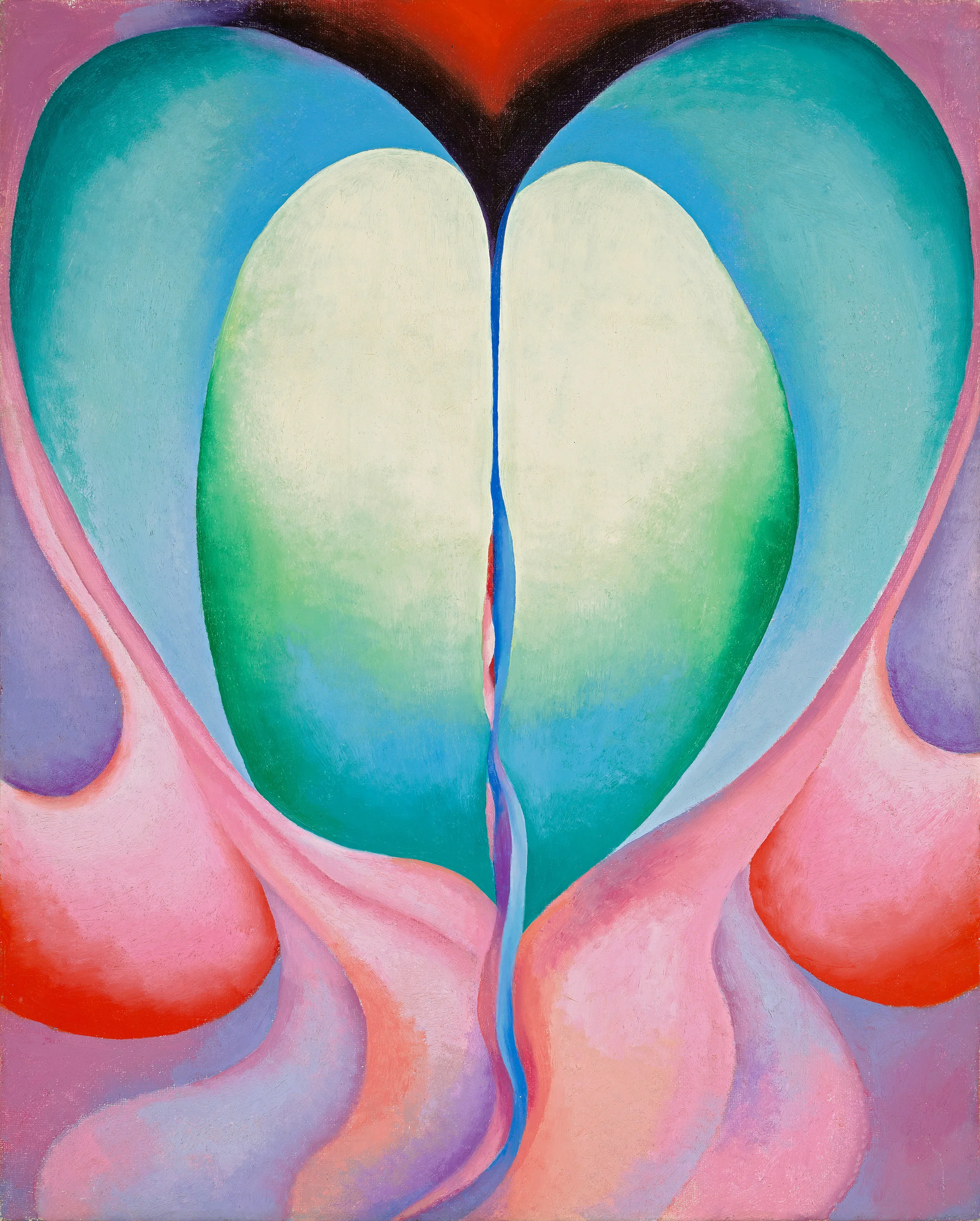 Das Erleben der Natur und sein Niederschlag im Werk O’Keeffes: In quellenden Formen und intensiven Farbklängen zeigt sie Blumen, Landschaften, Wolken, Licht, fragt dabei nach Grundstrukturen und sucht nach Steigerung und Akzentuierung. Dem Fluss der Linien nachzuspüren und zu verfolgen, wie sie sich gegenseitig annähern oder zu Durchblicken auf tiefere Räume ausweiten, wird zum reinen Sehvergnügen. Das schärft entscheidend unsere optische Wahrnehmung – ein wichtiger Aspekt im Schaffen O’Keeffes. Oft ist der Bildanlass – eine Blume, ein Berg, ein Wasserfall, ein See – deutlich zu identifizieren.