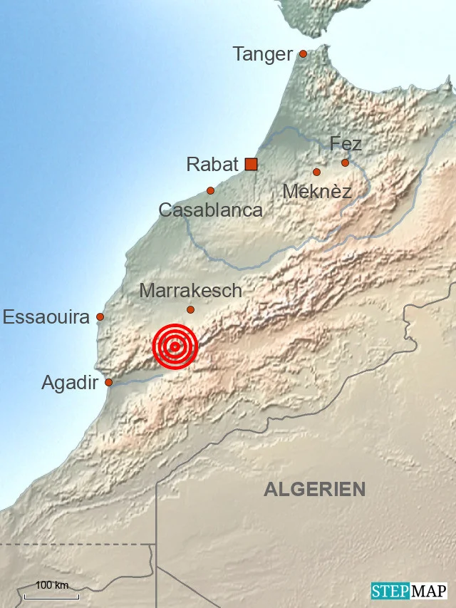 Ein Erdbeben der Stärke 6,8 hat in Marokko in der Nacht zum Samstag mehr als tausend Tote gefordert. Das Epizentrum lag 70 Kilometer südwestlich von Marrakesch. Selbst in der entfernten Hauptstadt Rabat und in Casablanca richtete das Beben Schäden an.