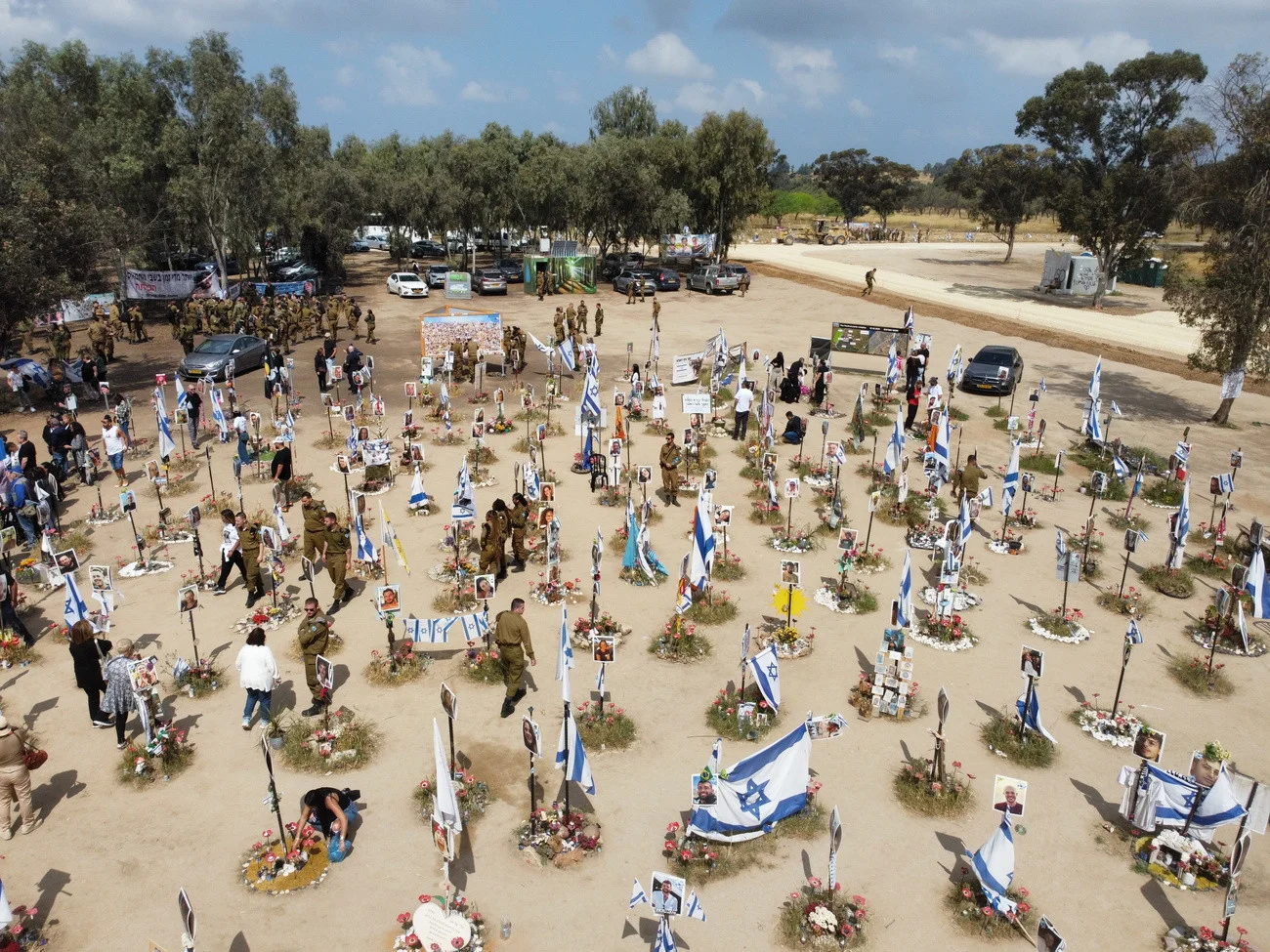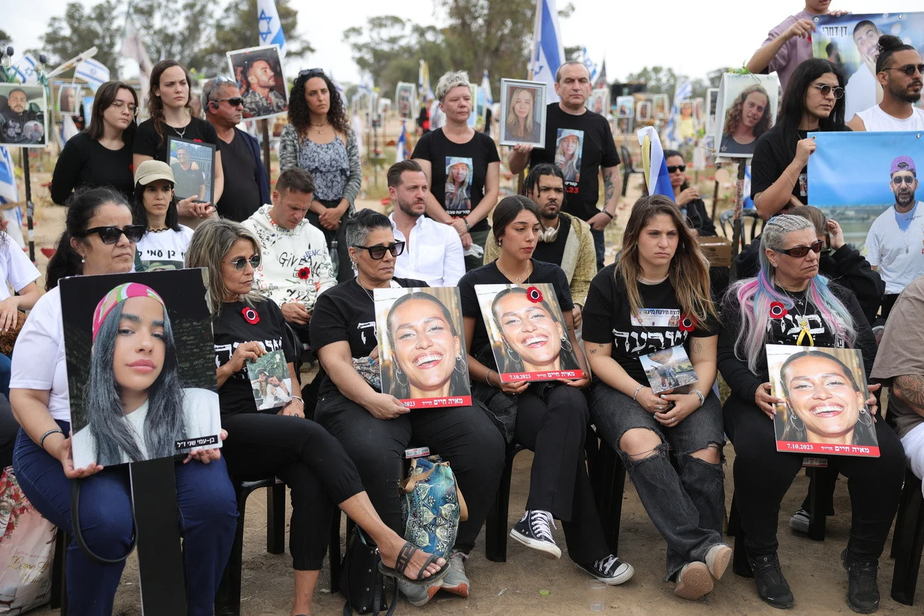 Sechs Monate danach: Israelische Familienangehörige besuchen den Ort, wo am 7. Oktober Hamas-Terroristen während des Nova-Musikfestivals Dutzende Menschen massakriert oder verschleppt hatten. Insgesamt töteten die Hamas-Kämpfer über 1300 Israeli. Nach Angaben der israelischen Armee werden noch 134 Geiseln festgehalten.