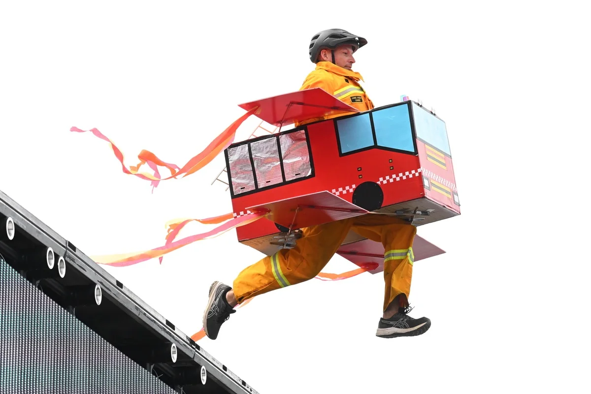 Trotz des Namens des alljährlich im Rahmen des Moomba Festivals abgehaltenen Wettbewerbs lässt sich feststellen: Der Mensch ist kein Vogel, er hat einen. Der im Bild festgehaltene Birdman hat mit seinem Flugapparat eine eigenwillige Lesart des Markennamens Airbus realisiert.