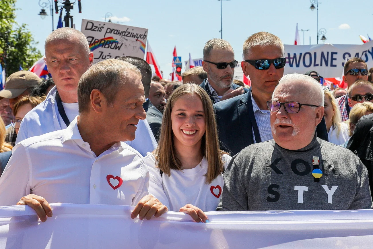 «PiS ins Pissoir» – unter diesem Slogan demonstrierten am Sonntag in Warschau Zehntausende gegen die nationalkonservative polnische PiS-Regierung. Nach Angaben der Organisatoren waren es eine halbe Million; regierungsfreundliche Medien sprechen von 150’000. Angeführt wurde die Demonstration vom oppositionellen Spitzenpolitiker und Ex-Regierungschef Donald Tusk. Dabei war auch Friedensnobelpreisträger und einstiger Solidarność-Chef Lech Wałęsa.