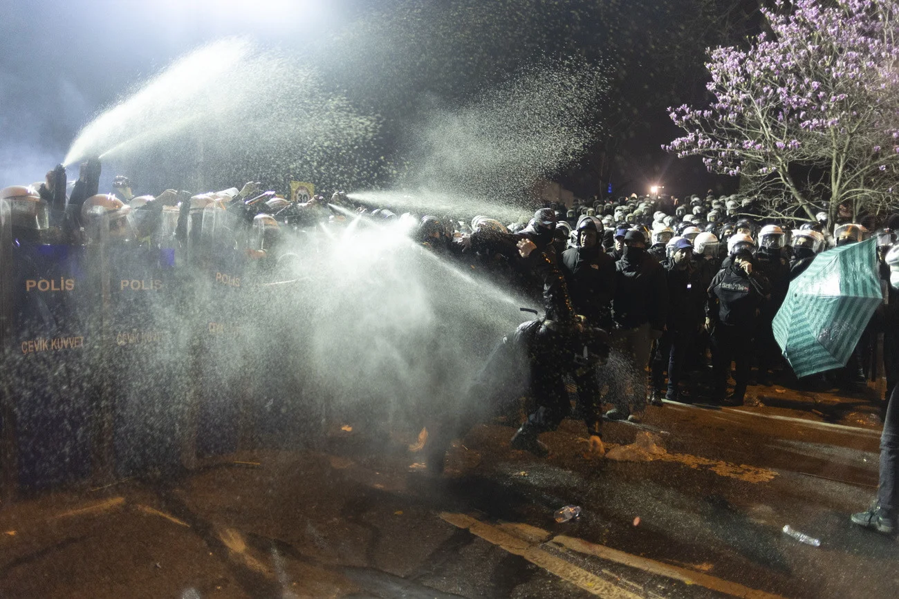 Die Sicherheitskräfte gehen mit Gummigeschossen, Wasserwerfern, Schlagstöcken Pfeffersprays und Knüppeln gegen die Manifestanten vor. Hunderte Menschen wurden festgenommen. Damit soll eine «Störung der öffentlichen Ordnung» verhindert werden, erklärt das Innenministerium. «Die Türkei wird sich nicht dem Strassenterror ergeben», sagte Erdoğan. «So wie wir dem Terrorismus nie nachgegeben haben, werden wir auch dem Vandalismus nicht weichen.» Nach offiziellen Angaben war İmamoğlu wegen «Korruption und Verbindung zu terroristischen Kreisen» verhaftet worden. Die meisten Beobachter bezeichnen dies als Vorwand.