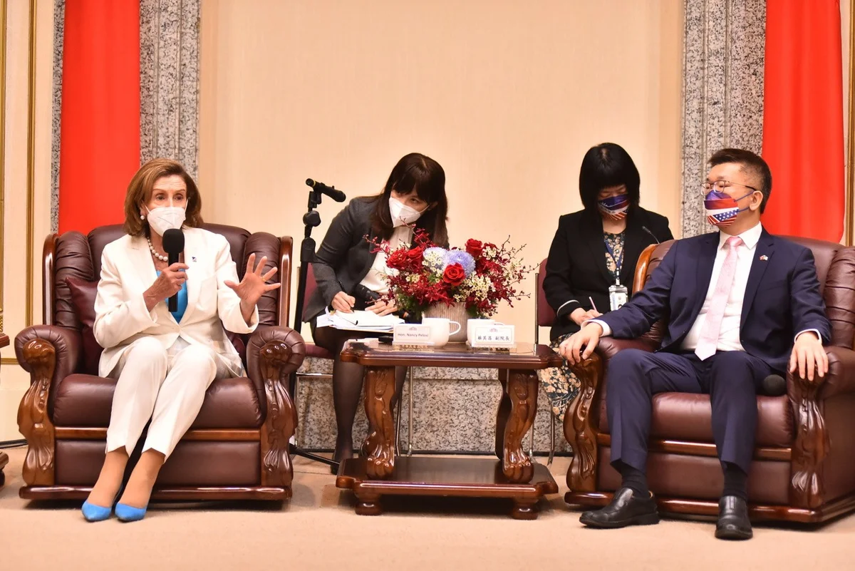Herausfordernde Besuchsdiplomatie: Der Besuch von Nancy Pelosi, der Vorsitzenden des amerikanischen Repräsentantenhauses, in Taiwan wirft weitherum hohe Wellen – im kritischen wie im zustimmenden Sinne. Pelosi ist in der Nacht auf den Mittwoch an Bord einer US-Militärmaschine in der taiwanesischen Hauptstadt Taipeh gelandet. Im Bild: Ein Gespräch mit dem Vizepräsidenten des taiwanischen Parlaments am Mittwochmorgen.