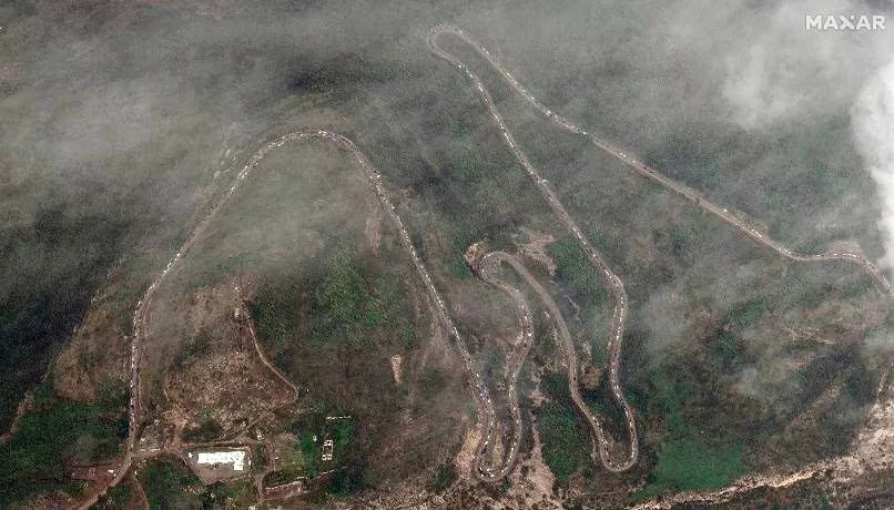 Fast hunderttausend Menschen sind bisher aus der hauptsächlich von Armeniern bewohnten Region Berg-Karabach geflohen. Die endlosen Fahrzeugschlangen sind sogar aus dem Weltall sichtbar. Die Satelliten-Aufnahme stammt vom US-Technologie-Unternehmen Maxar.