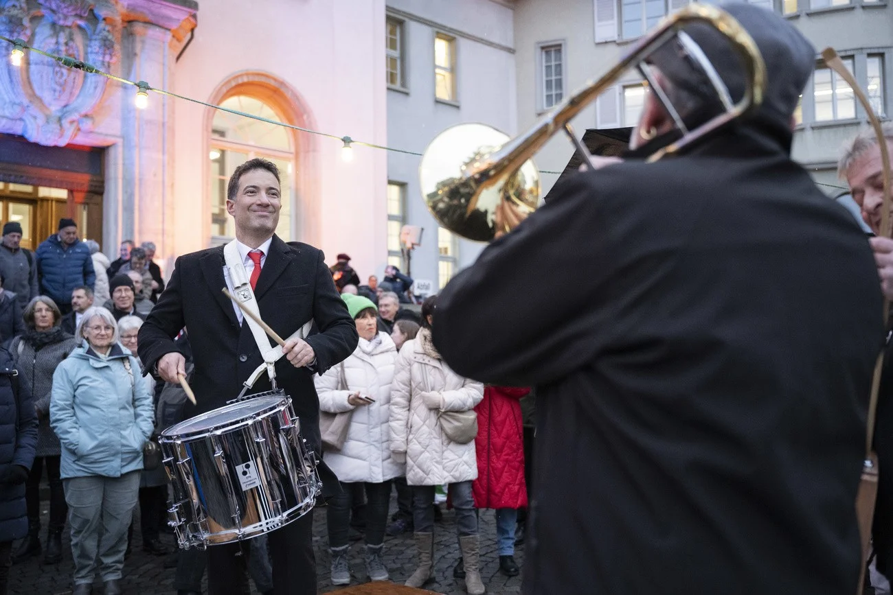 Empfang für den neu gewählten Ständeratspräsidenten Andrea Caroni in Herisau, der Hauptstadt seines Heimatkantons Appenzell Ausserrhoden. Während der Feier am Mittwoch betätigt sich der Politiker gleich selbst als Trommler. Das passt zu seinem Beruf. Klappern gehört zum Handwerk, sagt man oft im Zusammenhang mit dem politischen Geschäft. Nicht selten wird von den Akteuren auf diesem Feld gerne auch getrommelt, wenn auch weniger im konkreten Sinn dieses Herisauer Beispiels.