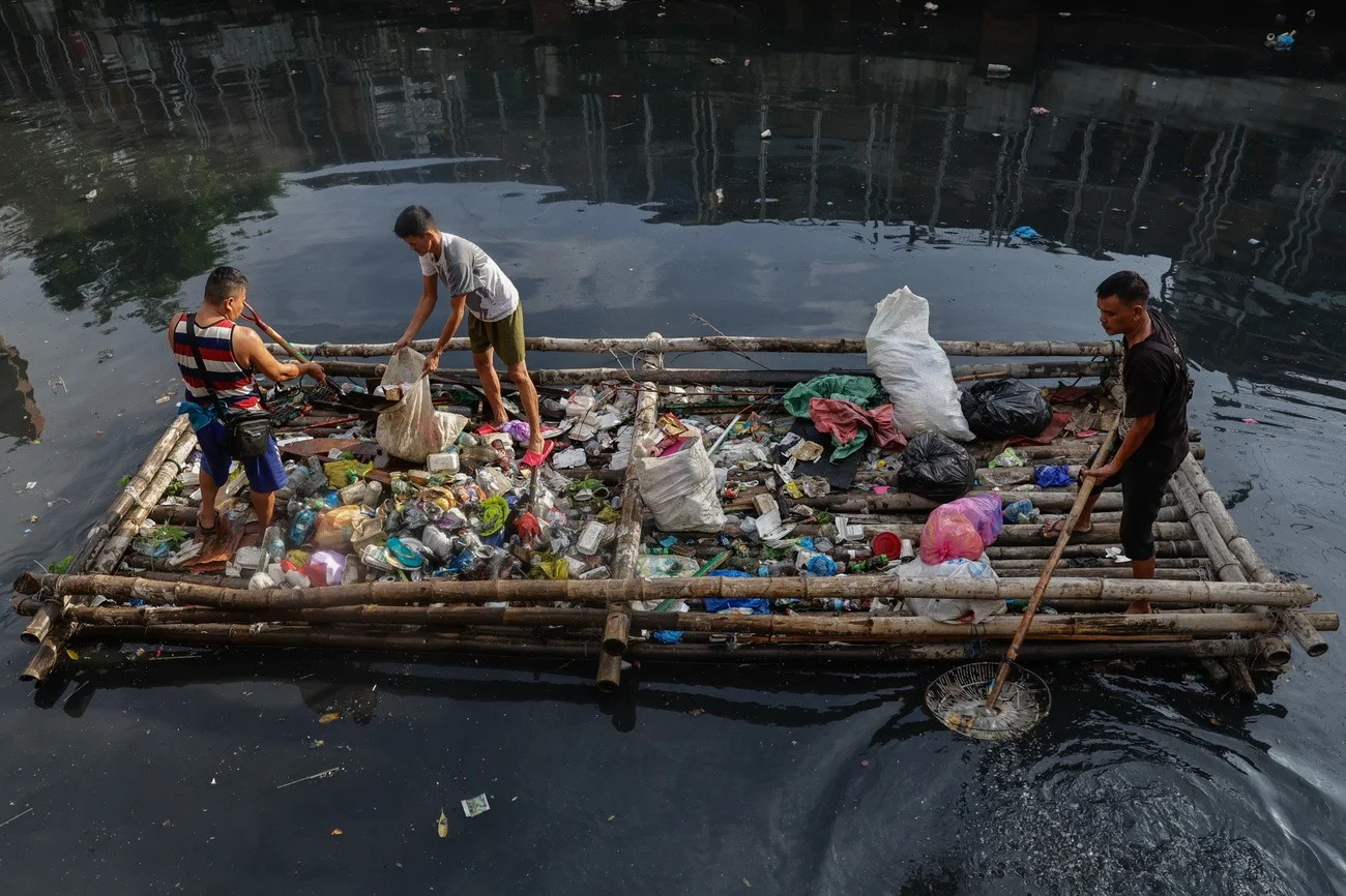 Operation Abfallbeseitigung am Samstagmorgen in der philippinischen Hauptstadt Manila. Auf einem Bambusboot fischen junge Einwohner Abfälle aus einem städtischen Gewässer. Der neu gewählte Bürgermeister hat in seiner ersten Amtswoche in der ganzen Stadt dringende Anstrengungen zur Entsorgung der offenbar überbordenden Abfälle angeordnet. Er beruft sich dabei auf eine gesundheitsgefährdende Notsituation.