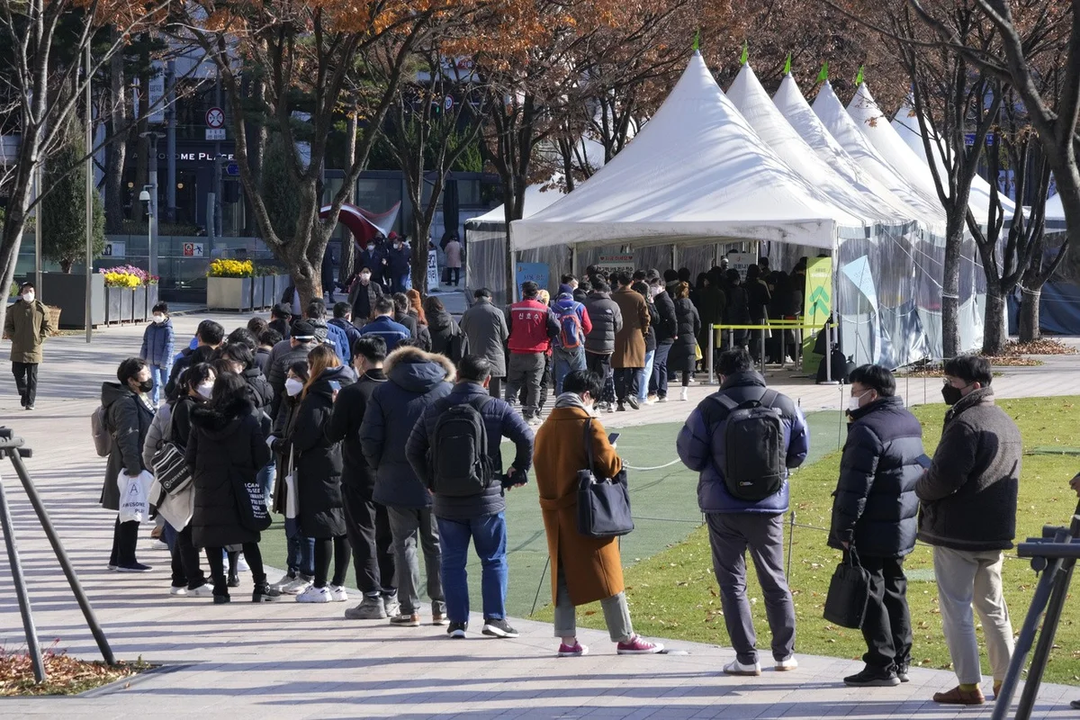 Schlange stehen vor einem Virus-Testzentrum in Seoul. Auch in Südkorea steigen die Corona-Infektionszahlen wieder deutlich an. Am Dienstag sind über 4’000 Neuinfektionen registriert worden – die höchste Zahl seit Beginn der Pandemie. In der Schweiz waren es am gleichen Tag allerdings über 6’000 Neuinfektionen. Südkorea zählt rund 51 Millionen Einwohner – gut sechs Mal mehr als die Schweiz. Die Ansteckungsraten in unserem Land und in den meisten andern Ländern Europas liegen pro 100’000 Einwohnern zurzeit also wesentlich höher als in Südkorea. (Foto: Keystone/AP Photo/Ahn Young)