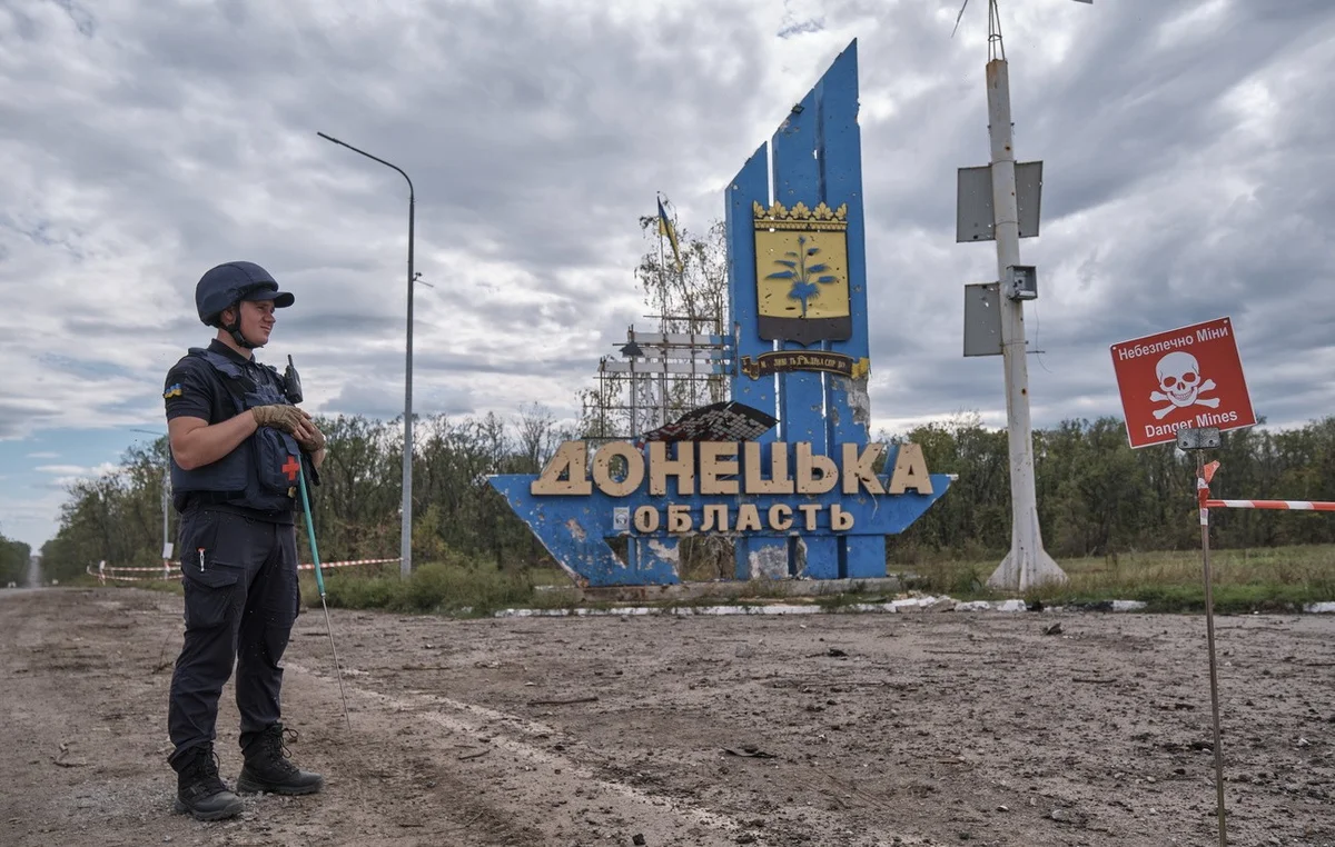 Ein ukrainischer Soldat vor der Grenzmarkierung zwischen den ostukrainischen Gebieten Donezk und Charkiw. Moskau hat am Dienstagabend die kurzfristige Durchführung von sogenannten Volksabstimmungen in vier ostukrainischen Provinzen verkündet. Durch diese Scheinreferenden soll der formelle Anschluss dieser Gebiete an Russland vollzogen werden. Es handelt sich um die Provinzen Donezk und Luhansk sowie um Teile der südlichen Provinzen Saporischja und Cherson. Die Abstimmung unter teilweise kriegsmässigen Bedingungen soll bereits am Freitag beginnen. Bis vor kurzem waren solche «Referenden» von Moskau mehrmals verschoben worden. Offenkundig reagiert Putin damit auf die jüngsten militärischen Rückschläge der russischen Armee im Krieg gegen die Ukraine.