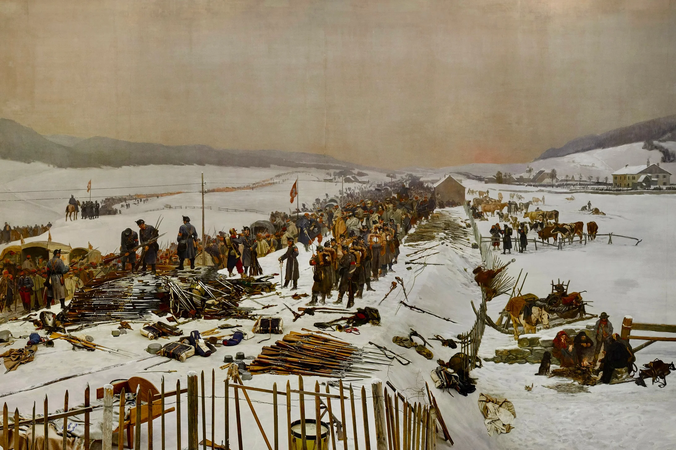 1871: 87'000 Soldaten der Bourbaki-Armee finden Zuflucht in der Schweiz (siehe oben).