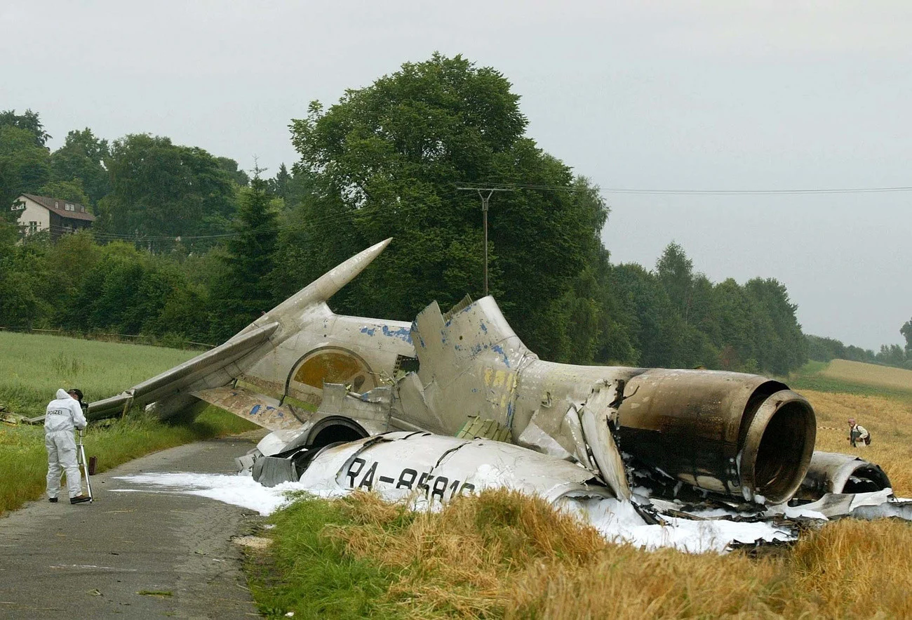 2002: Über Überlingen am Bodensees kollidiert eine Passagiermaschine der Bashkirian Airlines vom Typ Tupolev TU-154 mit einem Boeing-Frachtflugzeug des Expresspostdienstes DHL. (Siehe oben)
