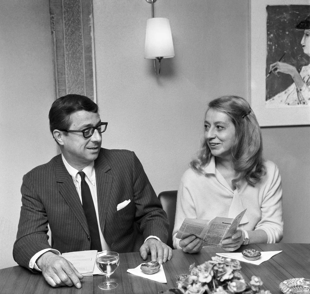 Die Schweizer Kabarettistin, Theater- und Filmschauspielerin spielte 1936 im Berner «Cabaret Bäretatze» und ab 1938 im Zürcher «Cabaret Cornichon». Bekannt wurde sie ab 1948 durch ihre Auftritte mit Walter Morath. Nach Auftritten im Cabaret «Nebelhorn» spielten die beiden im «Programm für zwei». Voli Geiler und Walter Morath standen insgesamt über 20 Jahre auf der Bühne. Nicht zuletzt dank ihrer zahlreichen Radio- und Fernsehauftritte gehörte das Paar vor allem in den 1960er Jahren zu den Stars des Schweizer Cabarets. Neben den parodistischen Programmen mit Walter Morath spielte Voli Geiler auch in verschiedenen Spielfilmen. Das Bild zeigt die beiden an einem Presseempfang am 20. März 1969. (Bild: Keystone/Photopress-Archiv)