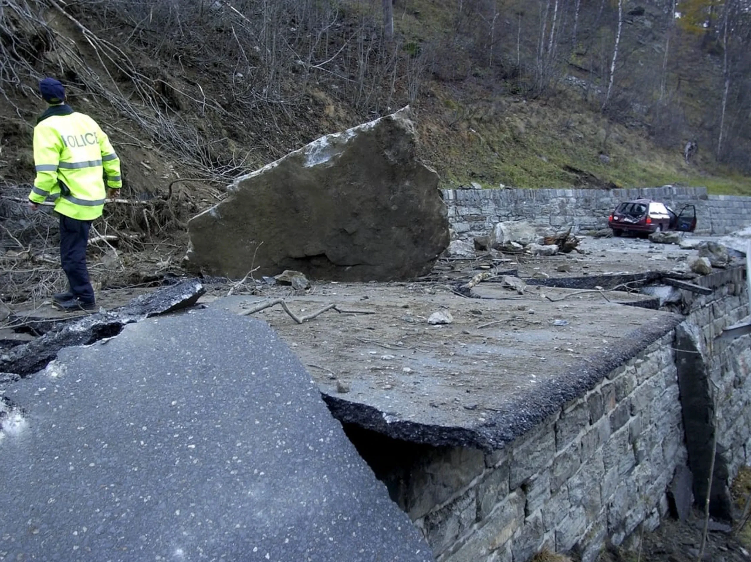 Auf der Strasse nach Saas-Fee stirbt ein Autofahrer durch einen herabstürzenden Felsen. Das Abbruchgebiet galt als nicht gefährdet. (Foto: Keystone/Oliver Maire)