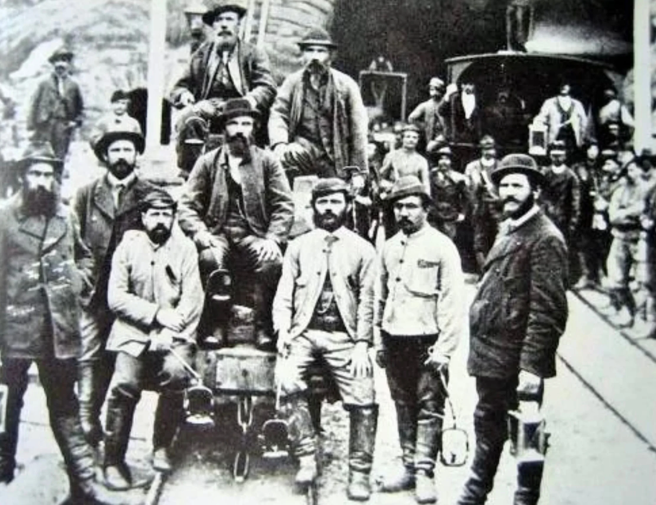 Am Südportal in Airolo beginnen die Bauarbeiten am Gotthardtunnel. Am 24. Oktober werden sie am Nordportal aufgenommen. Gearbeitet wird in drei Schichten rund um die Uhr. Das Bild zeigt Bauarbeiter vor dem Portal in Airolo im Jahr 1880. Der 15 km lange Gotthard-Eisenbahntunnel wird am 22. Mai 1882 eingeweiht. (PD)