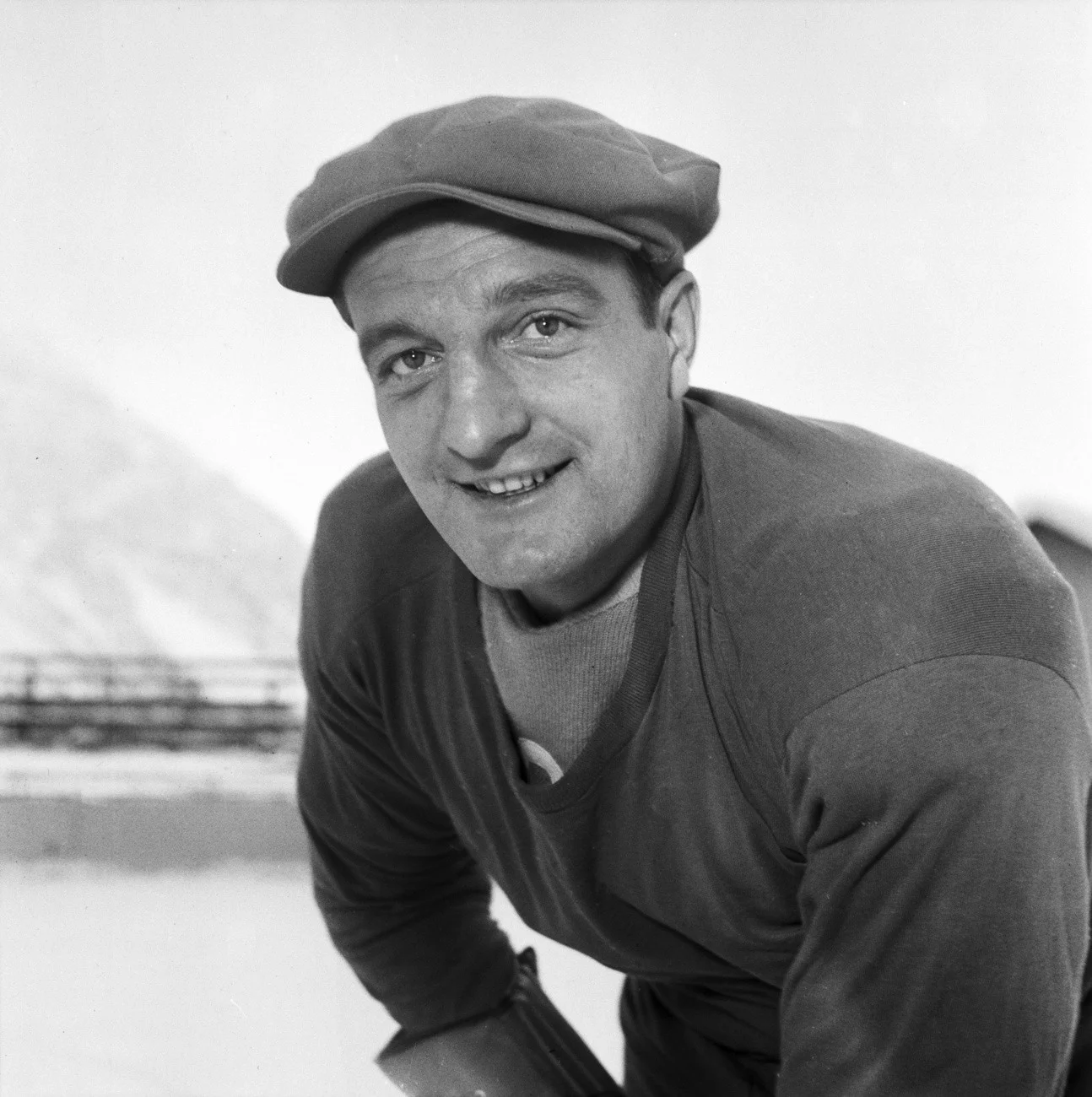 Der Schweizer Eishockeyspieler bildete zusammen mit seinem Bruder Gebi Poltera und seinem Vetter Hans-Martin Trepp den gefürchteten «Arosa-Sturm» des EHC Arosa. Er nahm für die Schweizer Nationalmannschaft an den Olympischen Winterspielen 1948 in St. Moritz und 1952 in Oslo und an den Weltmeisterschaften 1950 und 1951 teil. Bei der Eröffnungsfeier der Olympischen Winterspiele 1952 in Oslo war Ueli Poltera Fahnenträger der Schweizer Delegation. Arosa wurde zwischen 1950 und 1957 sieben Mal ununterbrochen Meister. (Foto: Keystone/Walter Scheiwiller)