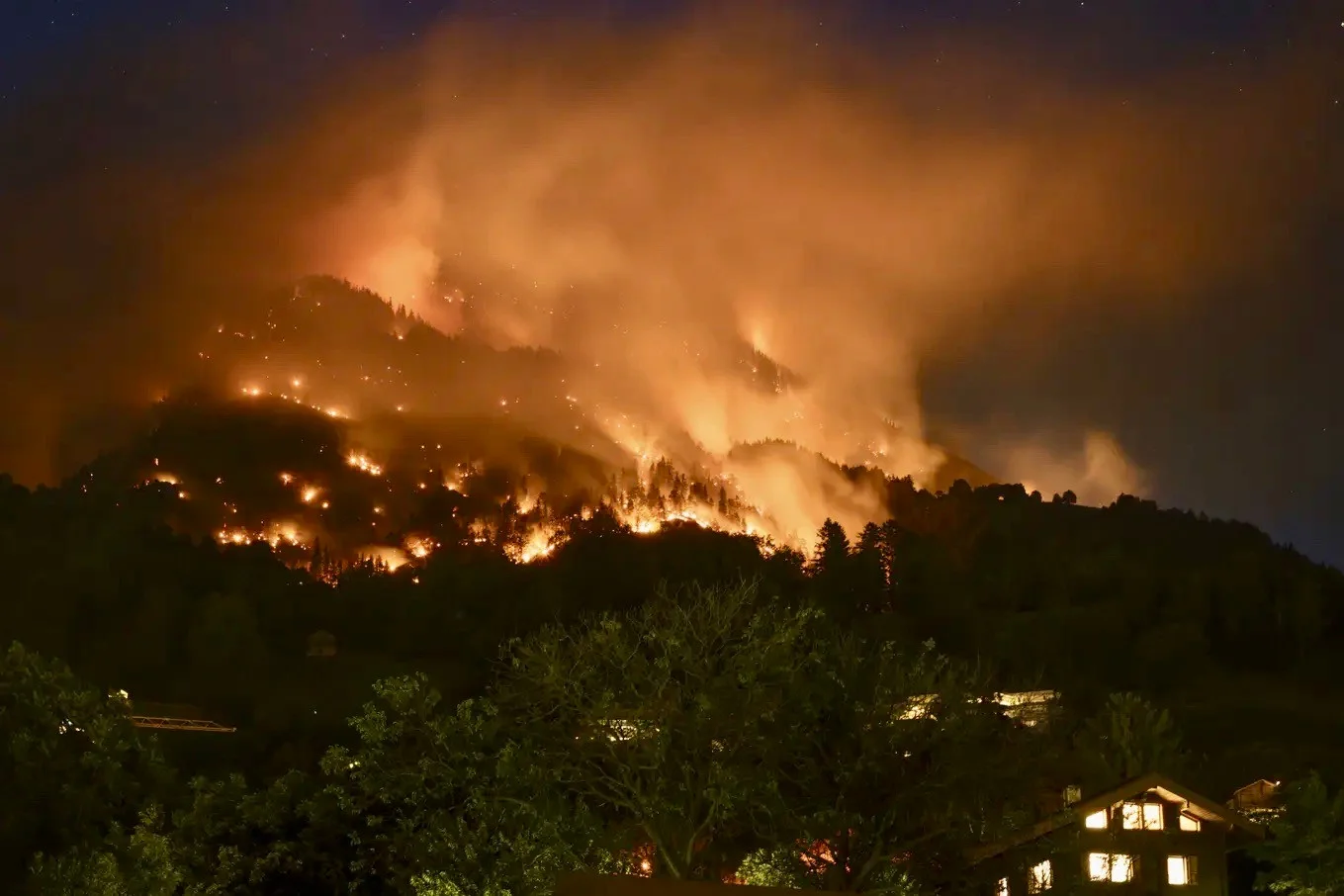 2023: Im Oberwallis bei Bitsch in der Nähe von Brig brennt der Wald.